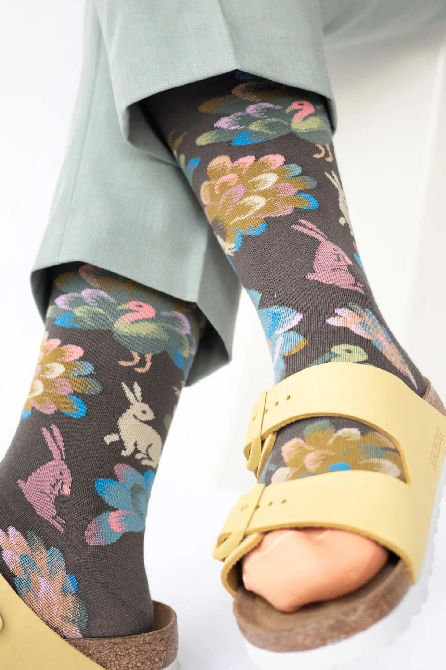 Bonne Maison konzentriert sich auf die Herstellung fantasiereich gemusterter Socken. Die verwendete Baumwolle aus Ägypten wird zuerst in Italien gesponnen und dann in Frankreich oder Portugal nach höchstem Standard gestrickt.