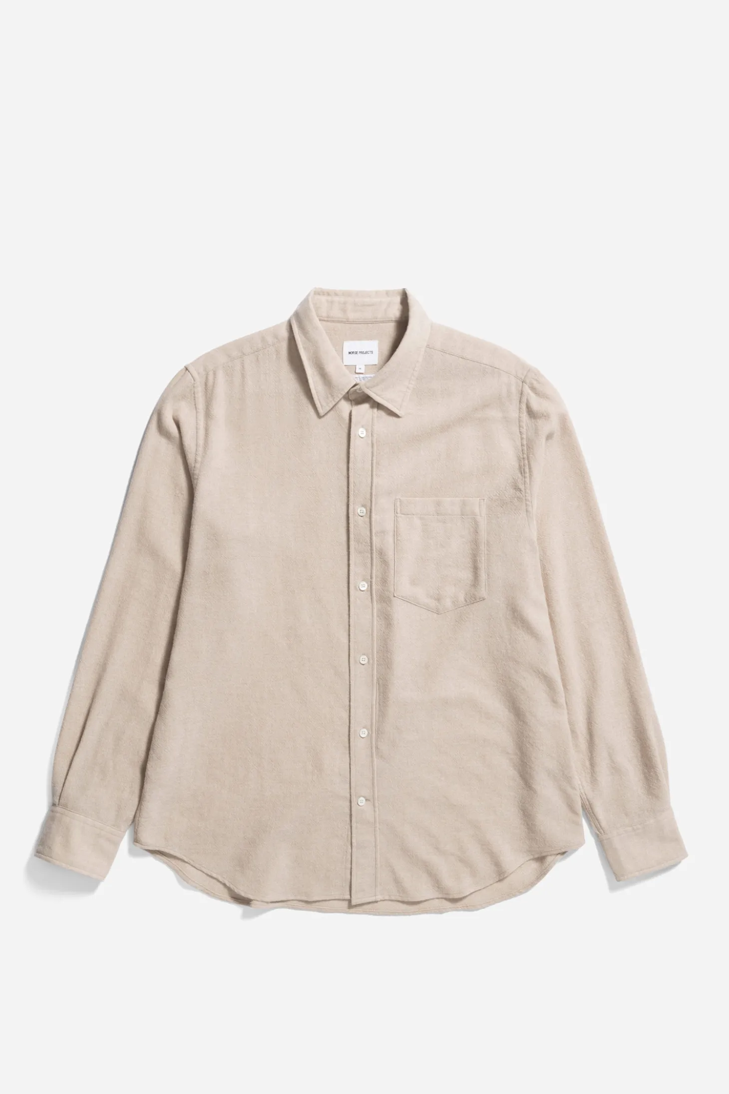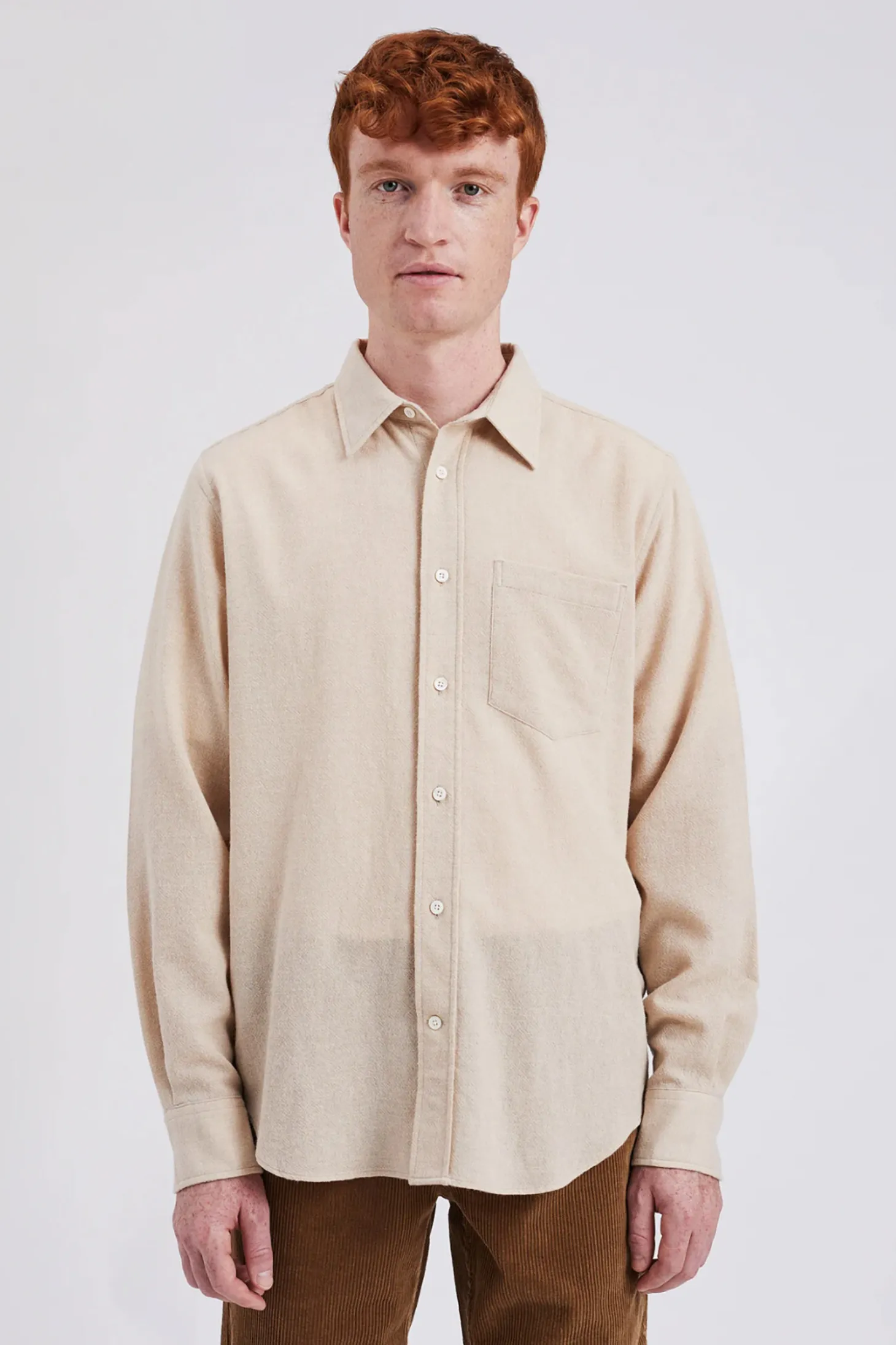 Ein locker sitzendes Hemd aus einem leichten, offen strukturierten Wollstoff, der in Italien gewebt wurde. Mit Perlmuttknöpfen und einer Brusttasche.