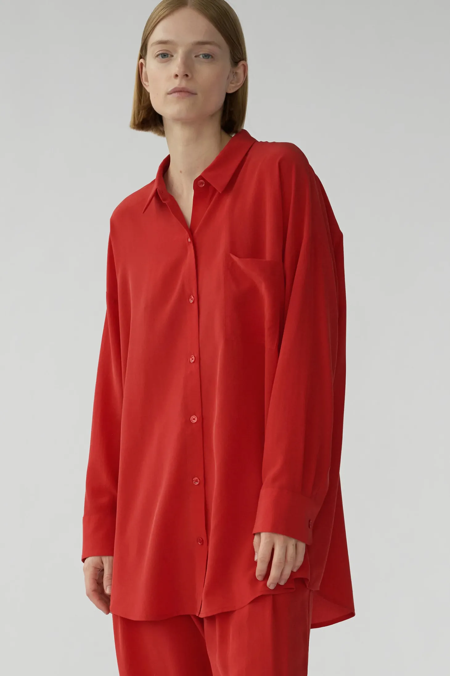 Geknöpftes Hemd in Übergrösse und gerader Passform. Mit etwas längerem Rücken, langen Ärmeln und einer Brusttasche.