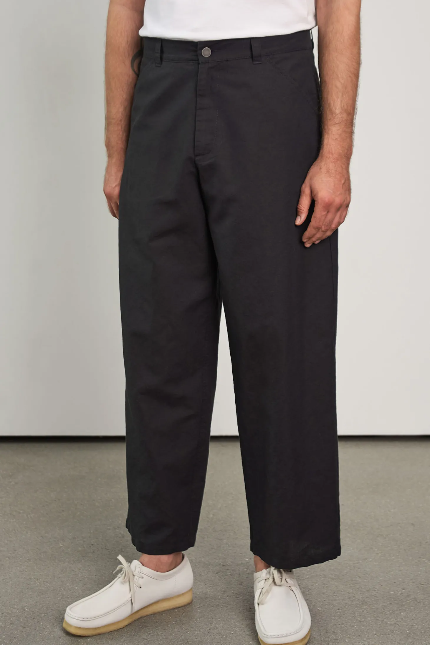 Weite Hose aus luftigem Leinenmischgewebe mit zwei Seitentaschen und zwei Gesässtaschen. Hochwertige Knopfleiste und Reissverschluss aus Deutschland.