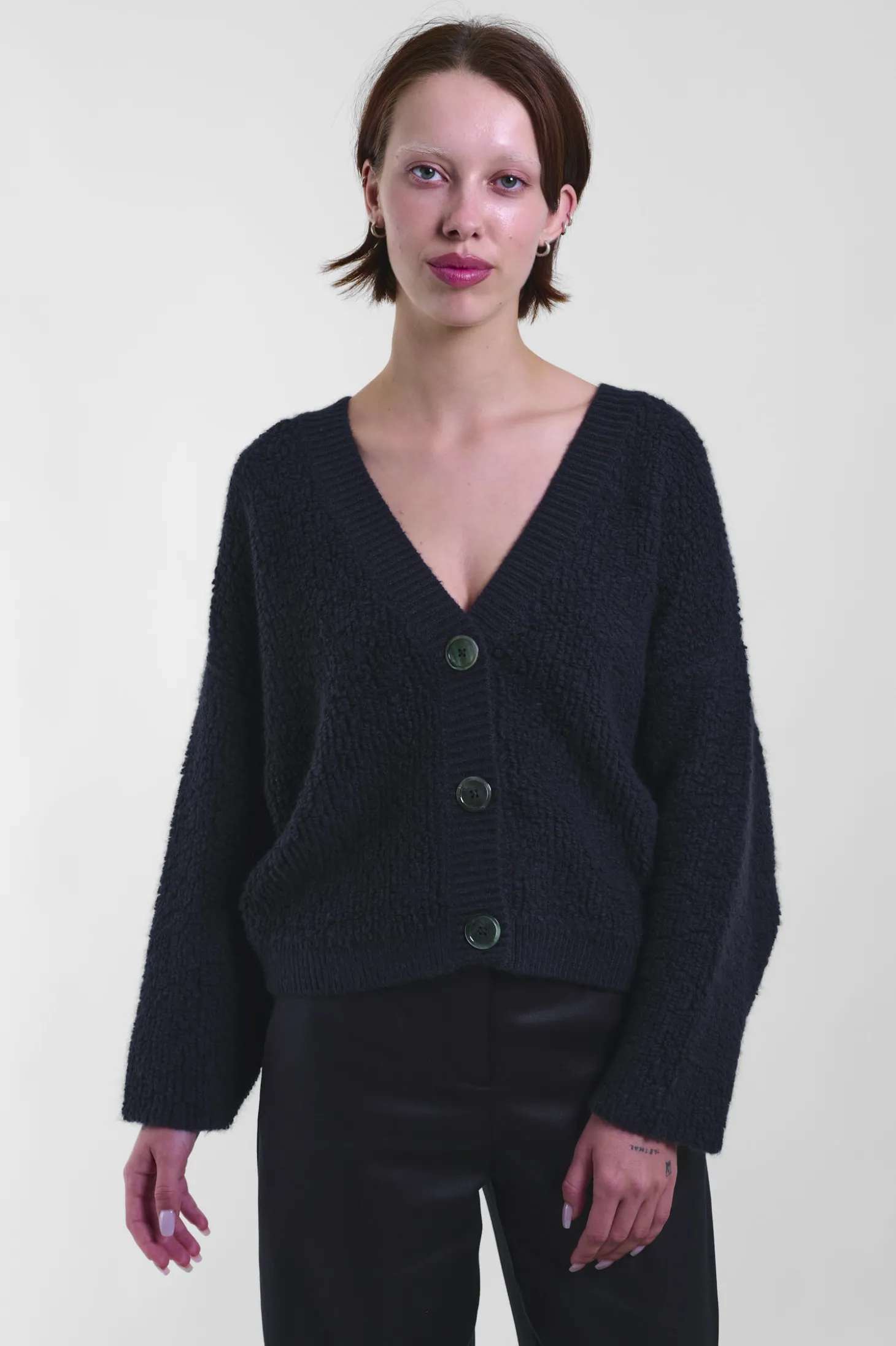 Cropped V-Neck Cardi 52, Blue/Black