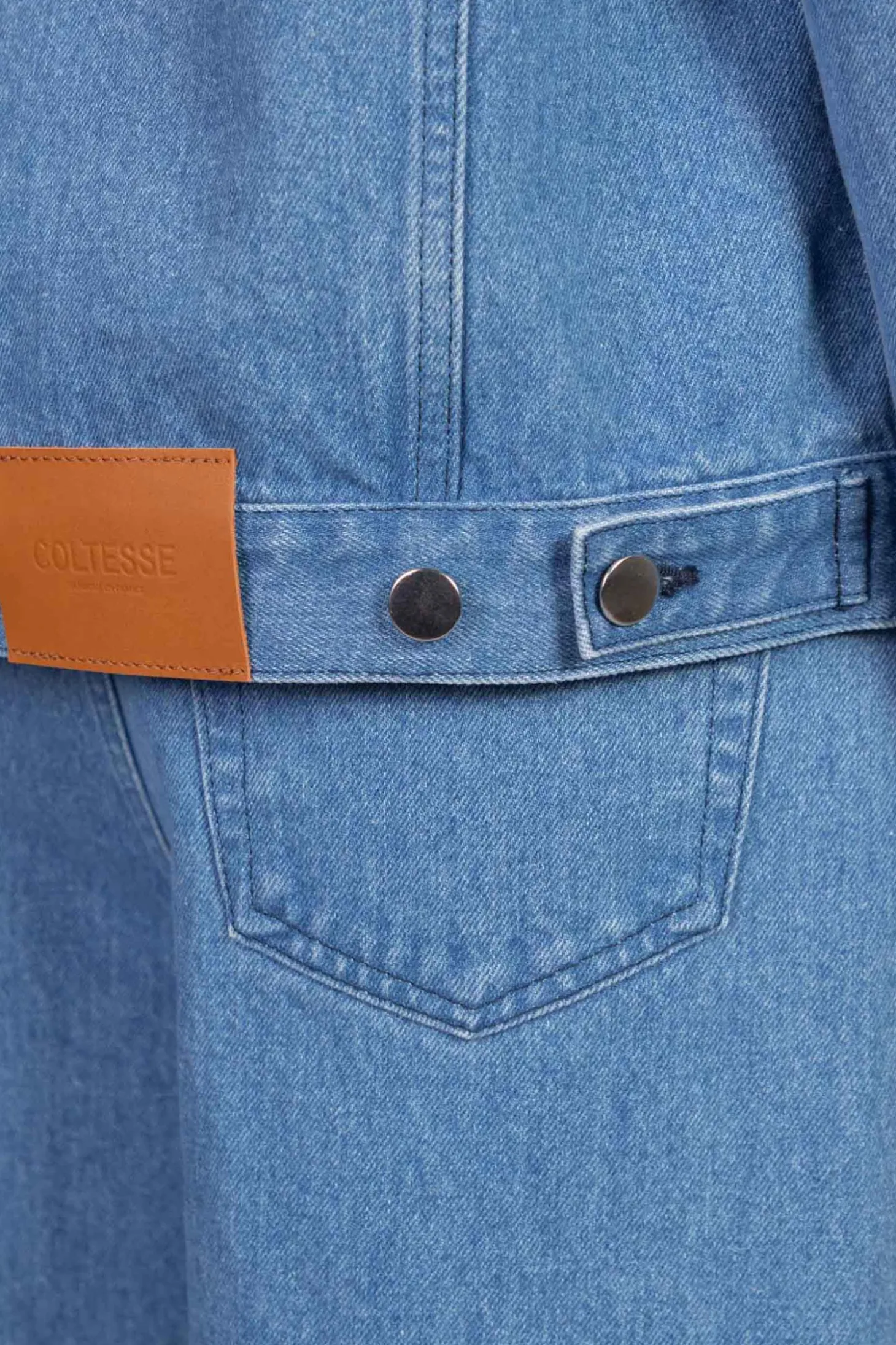 Inspiriert vom Workwear-Stil, verfügt sie über eine Vielzahl von Taschen: vier aufgesetzte Taschen vorne, zwei Seitentaschen, zwei Innentaschen. Weitere Details: seitliche Laschen, ungefüttert. Knöpfe mit Coltesse-Logo.