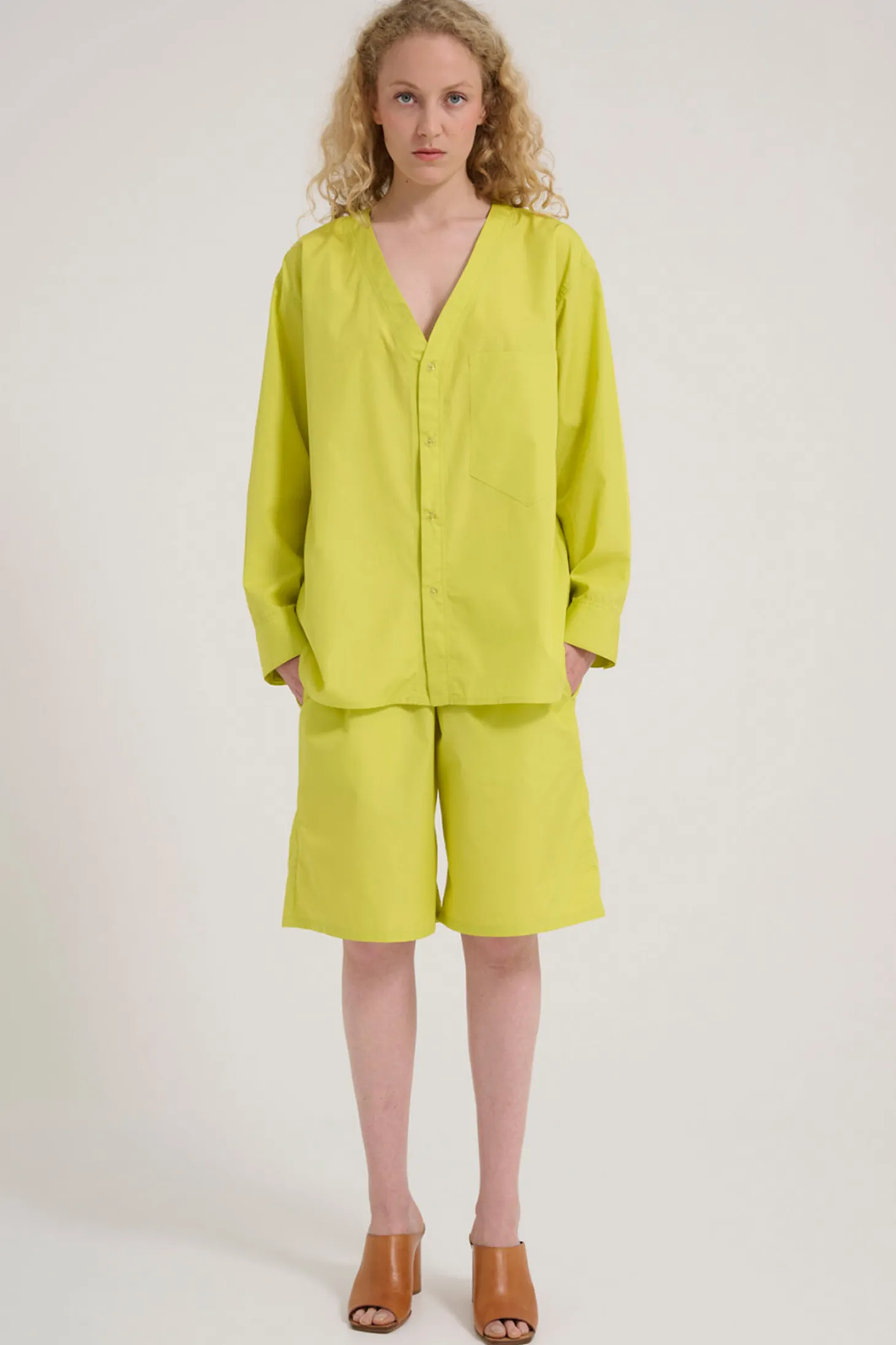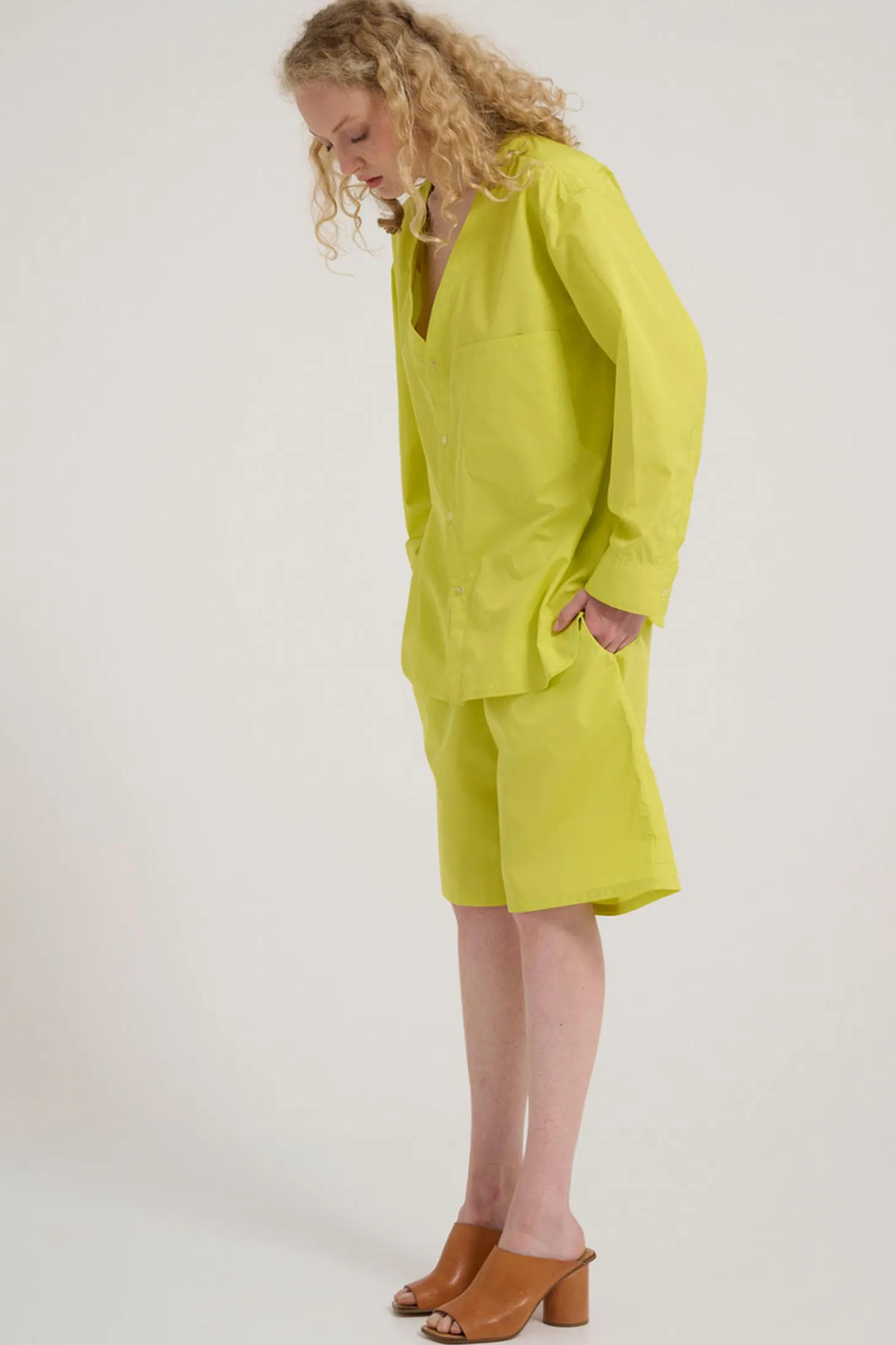 Shorts mit elastischem Bund und weiten Beinen. Sie hat zwei seitliche Taschen.
