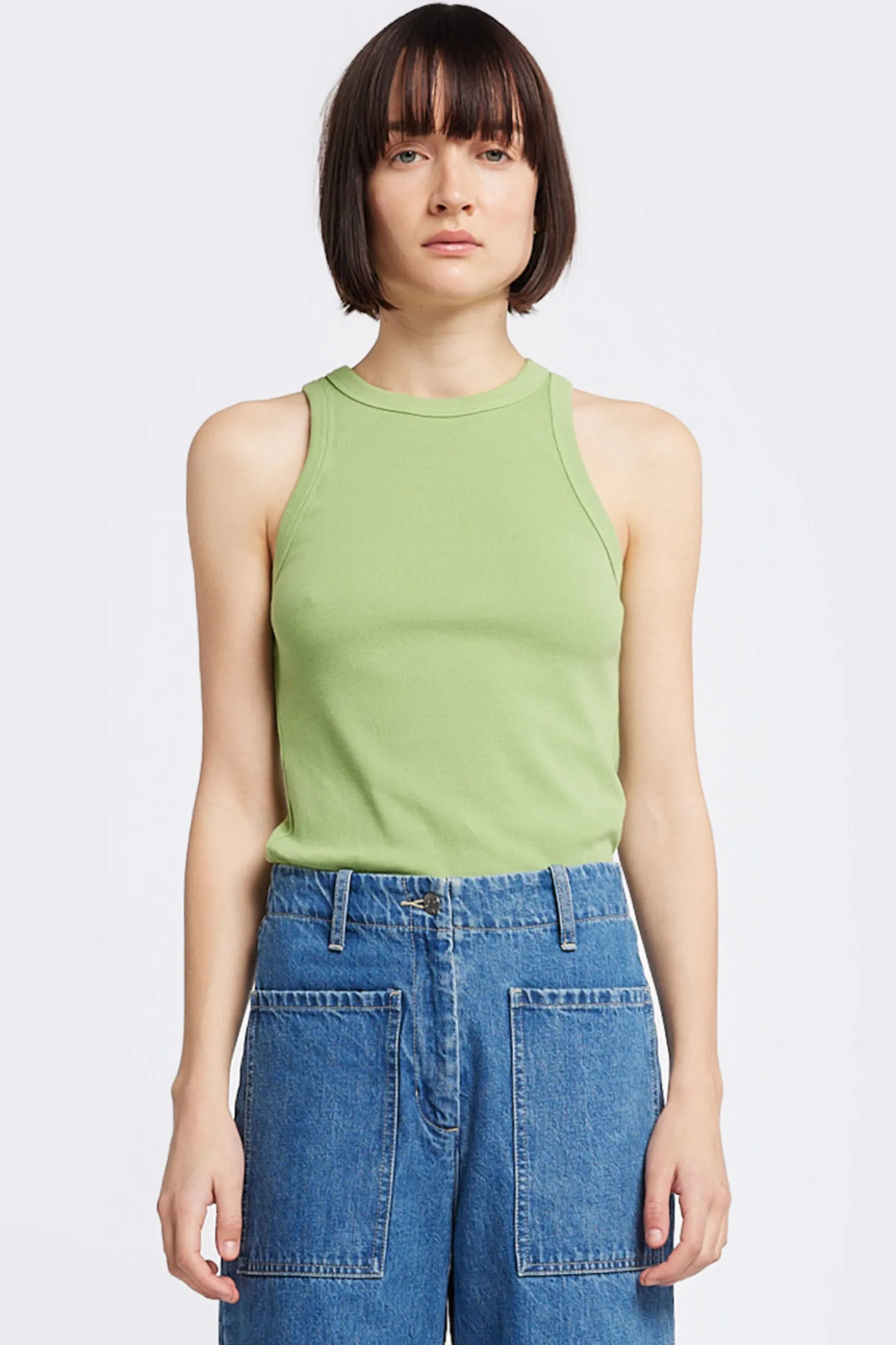 Tanktop mit einem hohen Rundhals-Auschnitt.