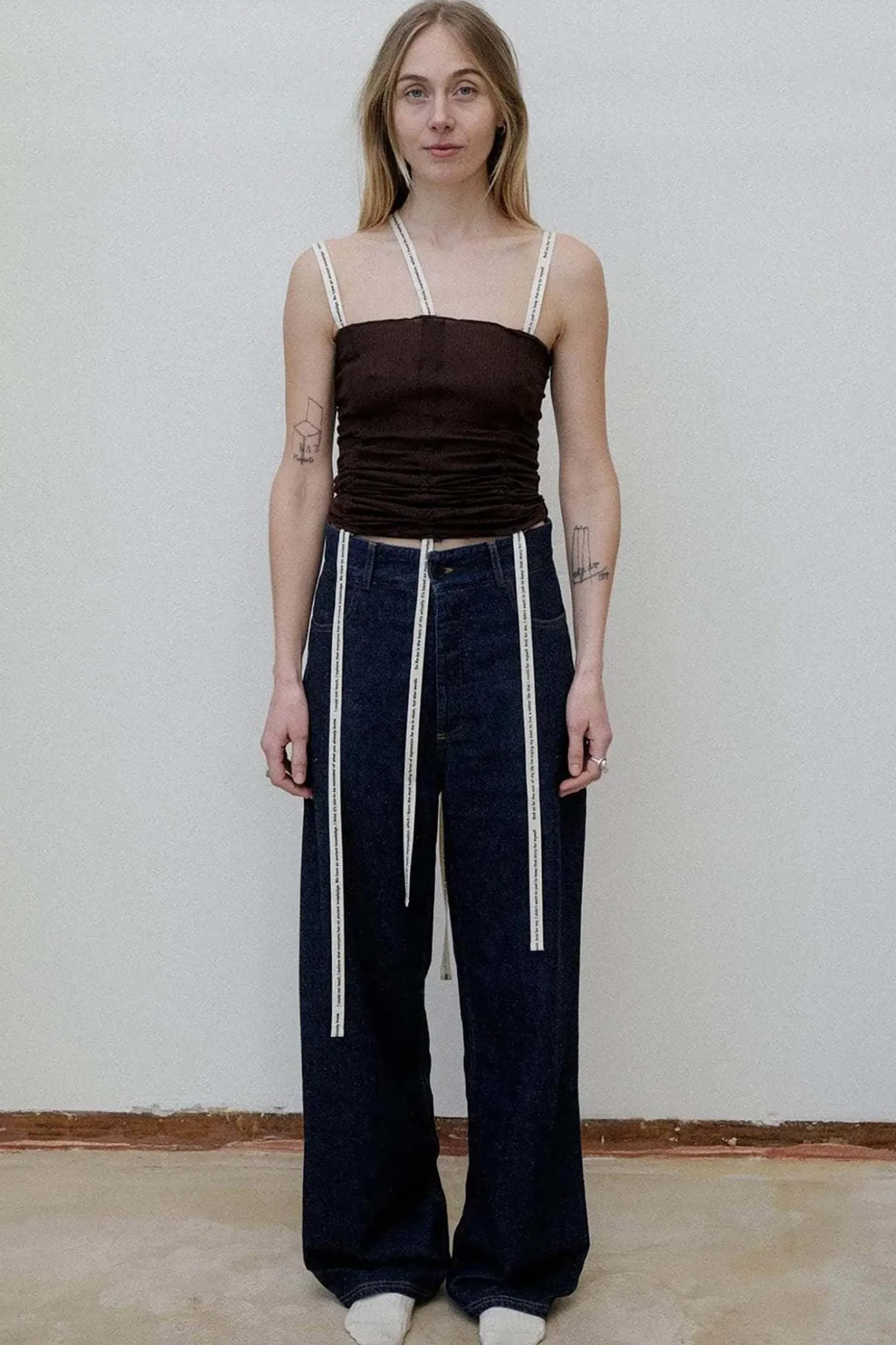 Ein perfektes Sommer Top aus leichtem Jersey. Mit drei feinen, asymmetrischen Trägen. Sie können die länge der Träger individuell einstellen, da sich die Bänder der Träger durch das ganze Top ziehen lassen. Gleichzeitig können sie mit den Bändeln verschiedene Raffungen im Top erzeugen.