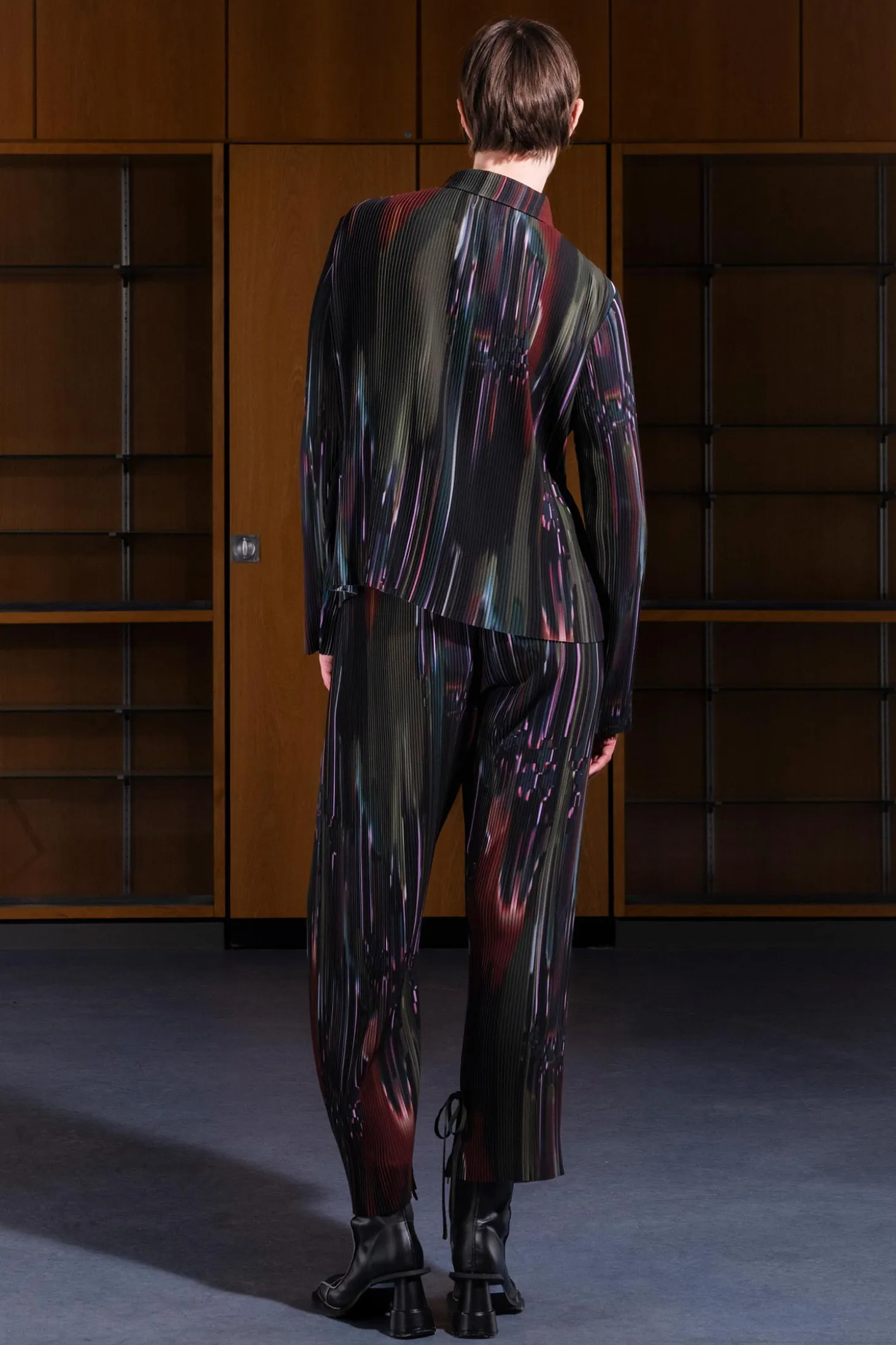 Plissierte Hose mit Gummizug für optimalen Tragekomfort. An den Seiten ist zusätzlicher Stoff angebracht, der vorne am Bund und unten am Bein gebunden werden kann.