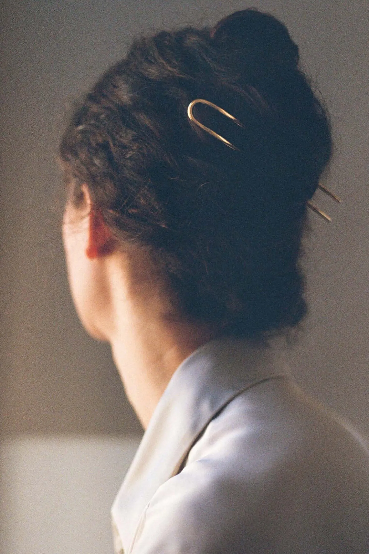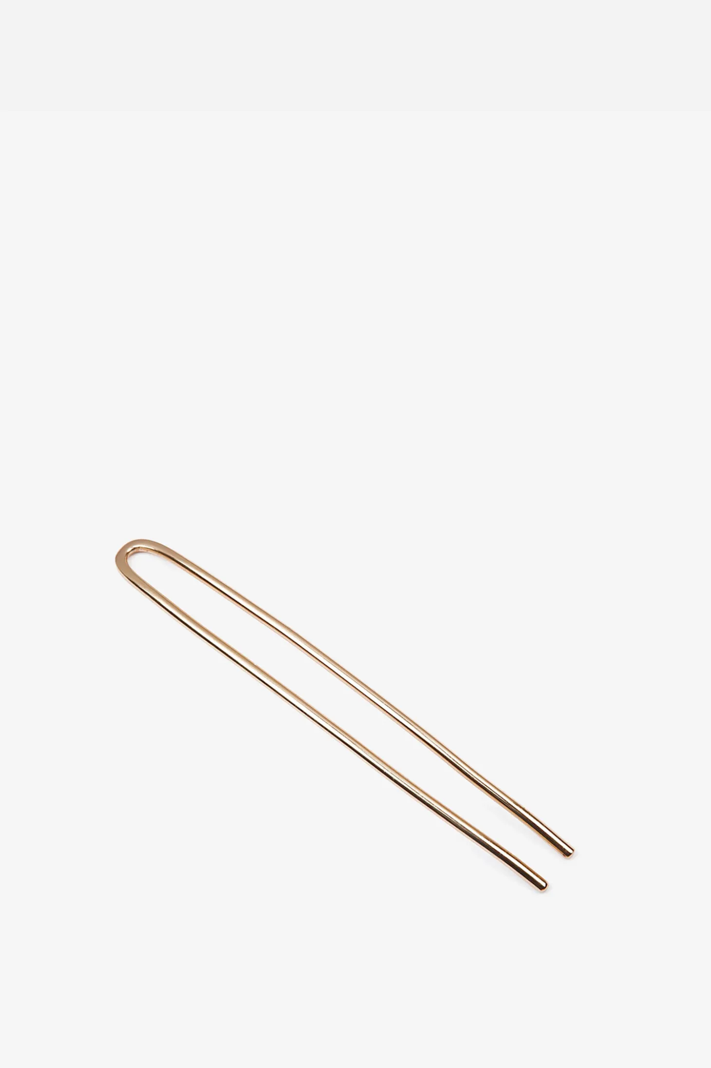 Kleine runde Haarnadel aus vergoldetem Messing.