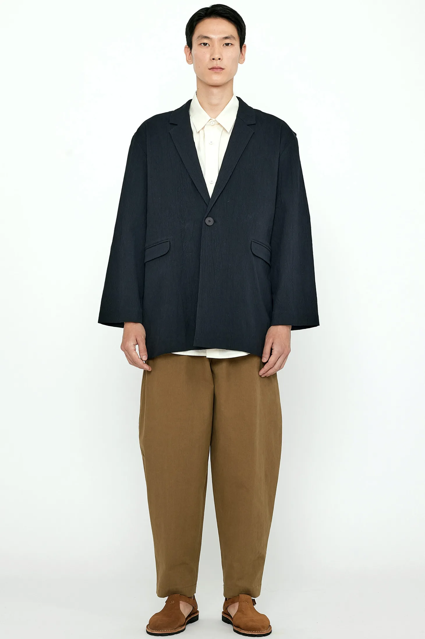 Oversized Blazer mit einem Knopf zum verschliessen. Der Blazer hat zwei Taschen auf der Vorderseite. Das „Layered“ im Namen kommt vor allem auf der Rückseite des Blazers gut zur Geltung. Da sieht es aus, als ob noch ein weiterer Stoff über den Rücken gezogen wurde.