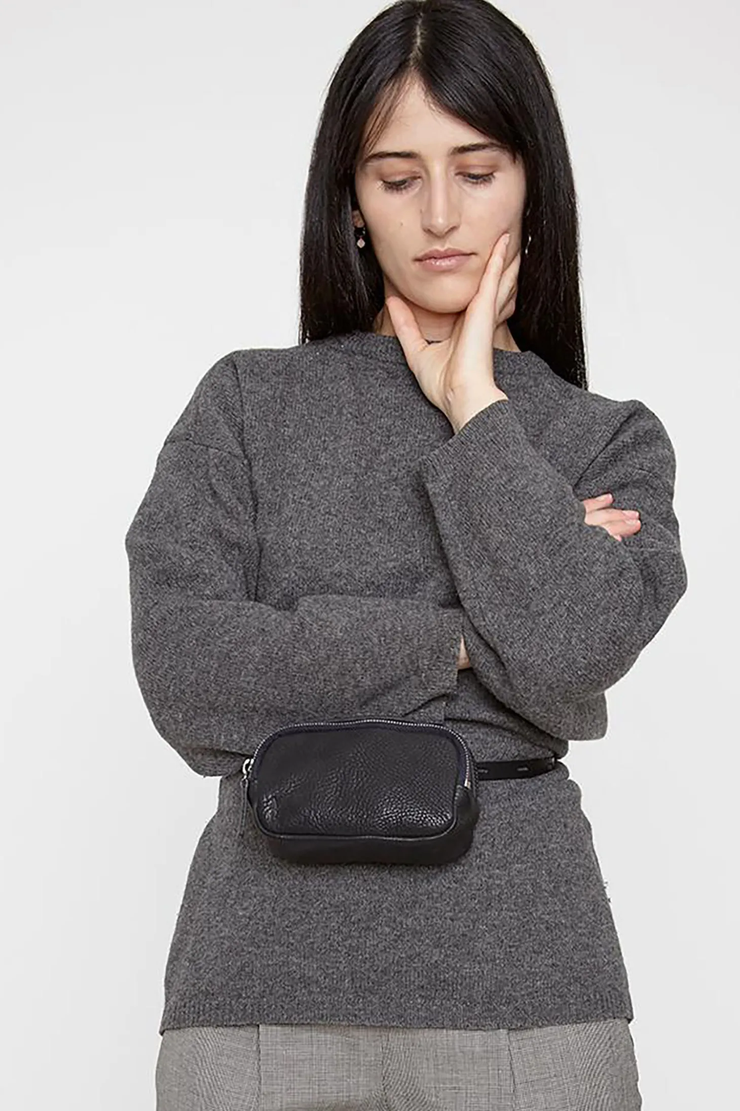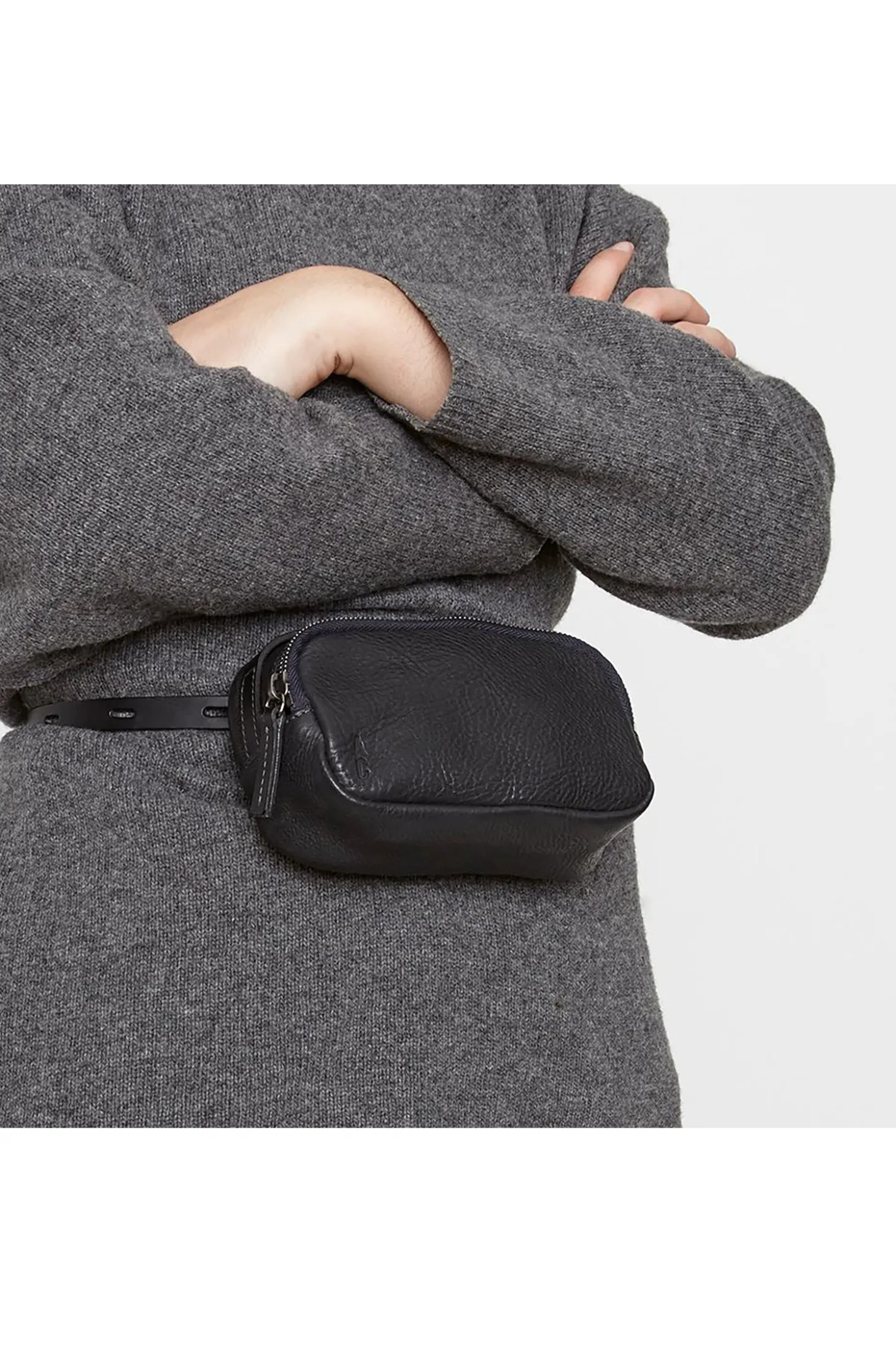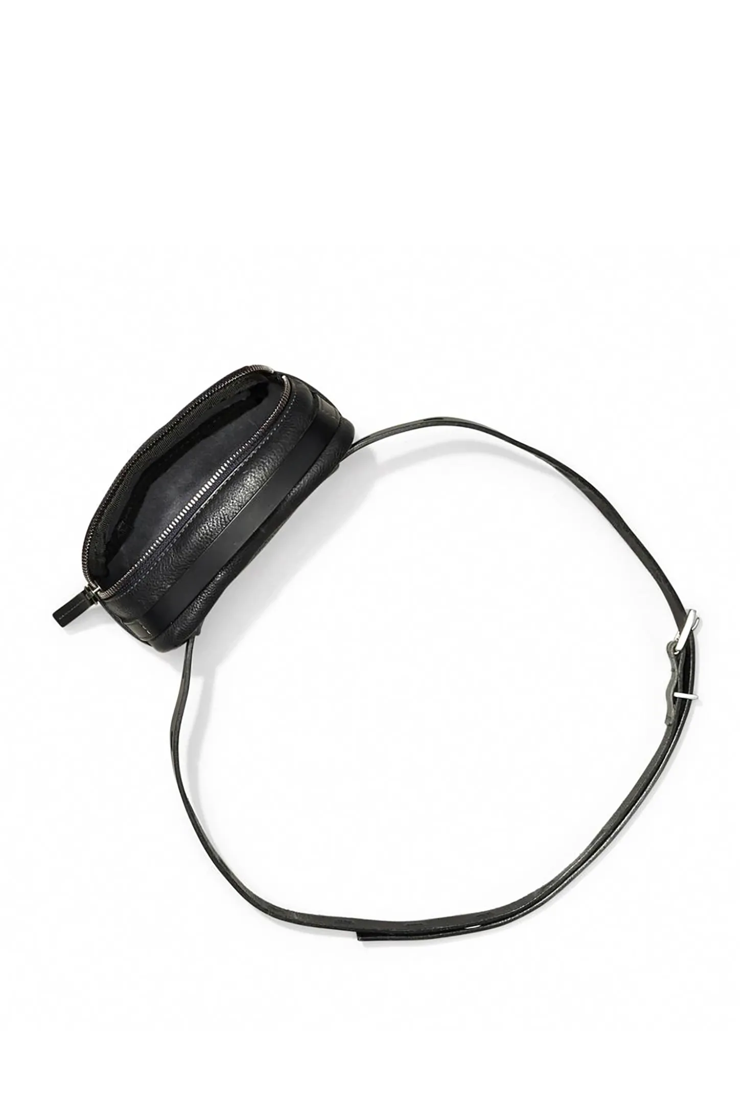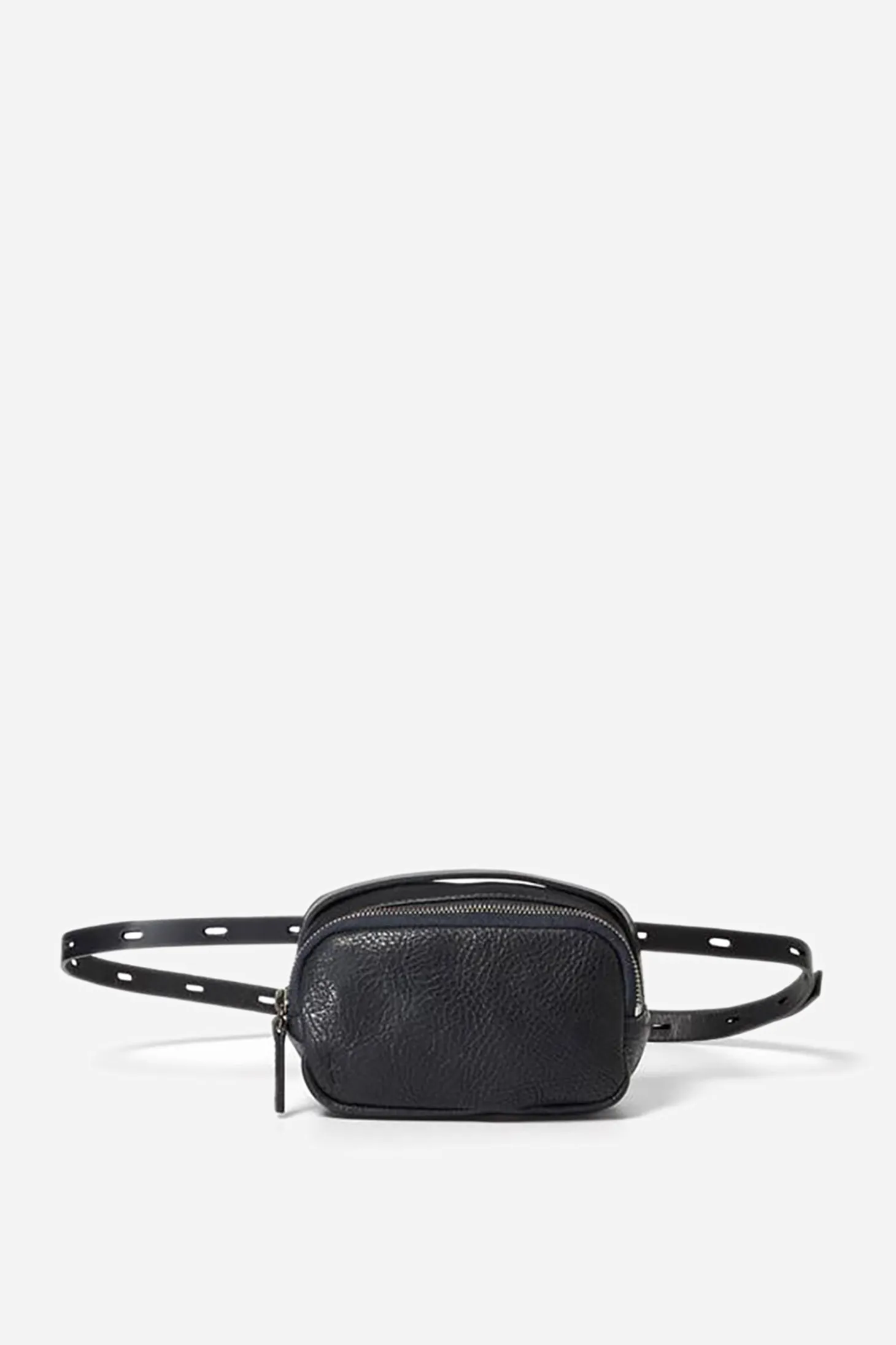 Leila Tiny Calvert Leather crossbody bag in Black is tiny but with a big personality. With a two-way zip closure as well as a bridle handle that sits neatly over the top. It can be worn crossbody or as a belt. Perfect for handsfree running around. Italian veg-tanned leather. Made in Spain. With an anti-stain finish to improve colourfastness and water damage, zip closure, bridle leather handles, bold stitching, removable adjustable bridle leather strap and inside card pocket.