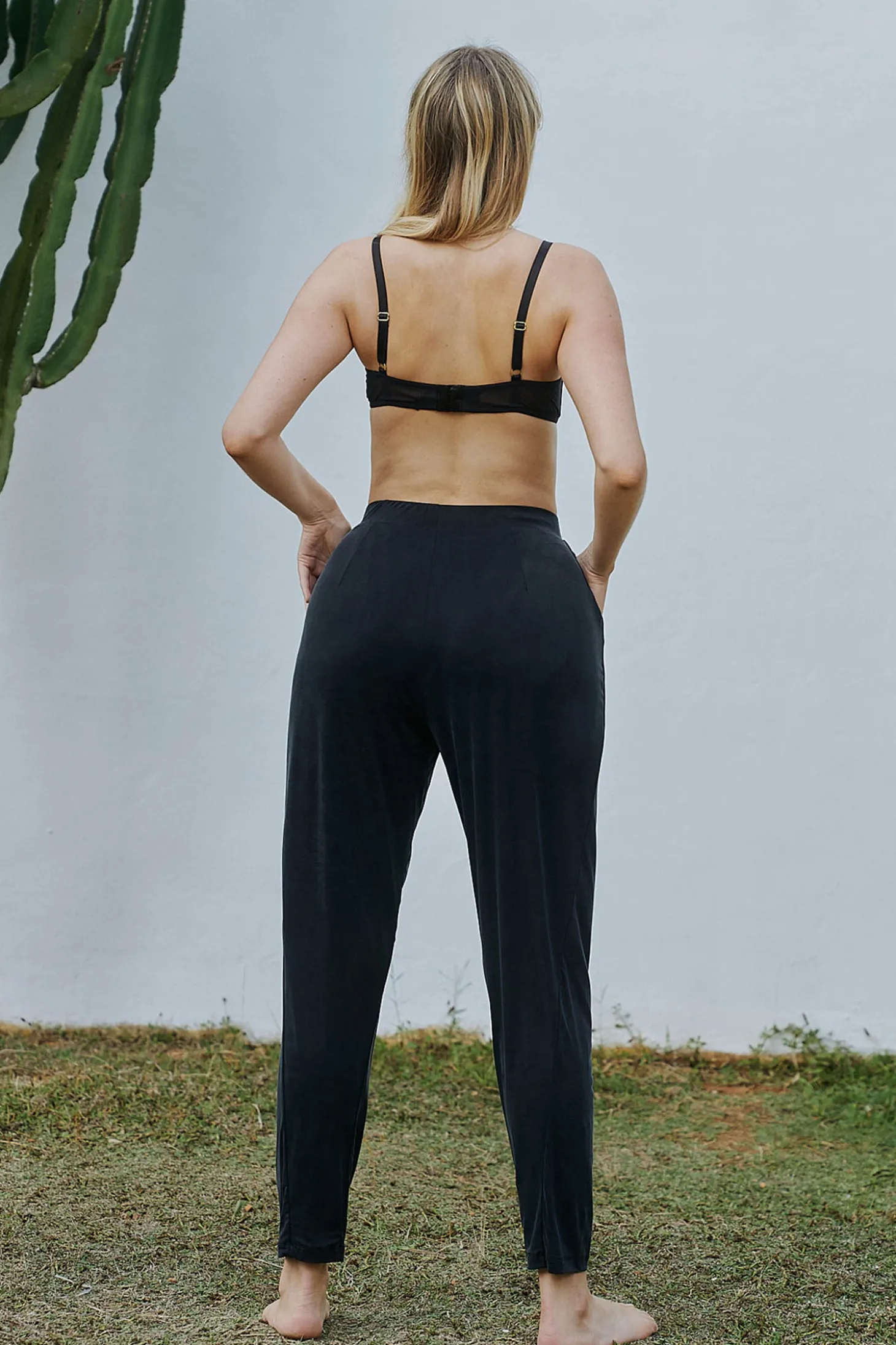 Die Hose ist sportlich elegant geschnitten mit getwisteten Seitennähten und formellen Bundfaltenhosen. Vielseitig kombinierbar lassen sich damit verschiedenste Outfits zaubern, ob zu Hause oder unterwegs. Der wunderschöne samtig weiche Stoff verwöhnt deine Haut und lässt dich entspannt und selbstbewusst fühlen.