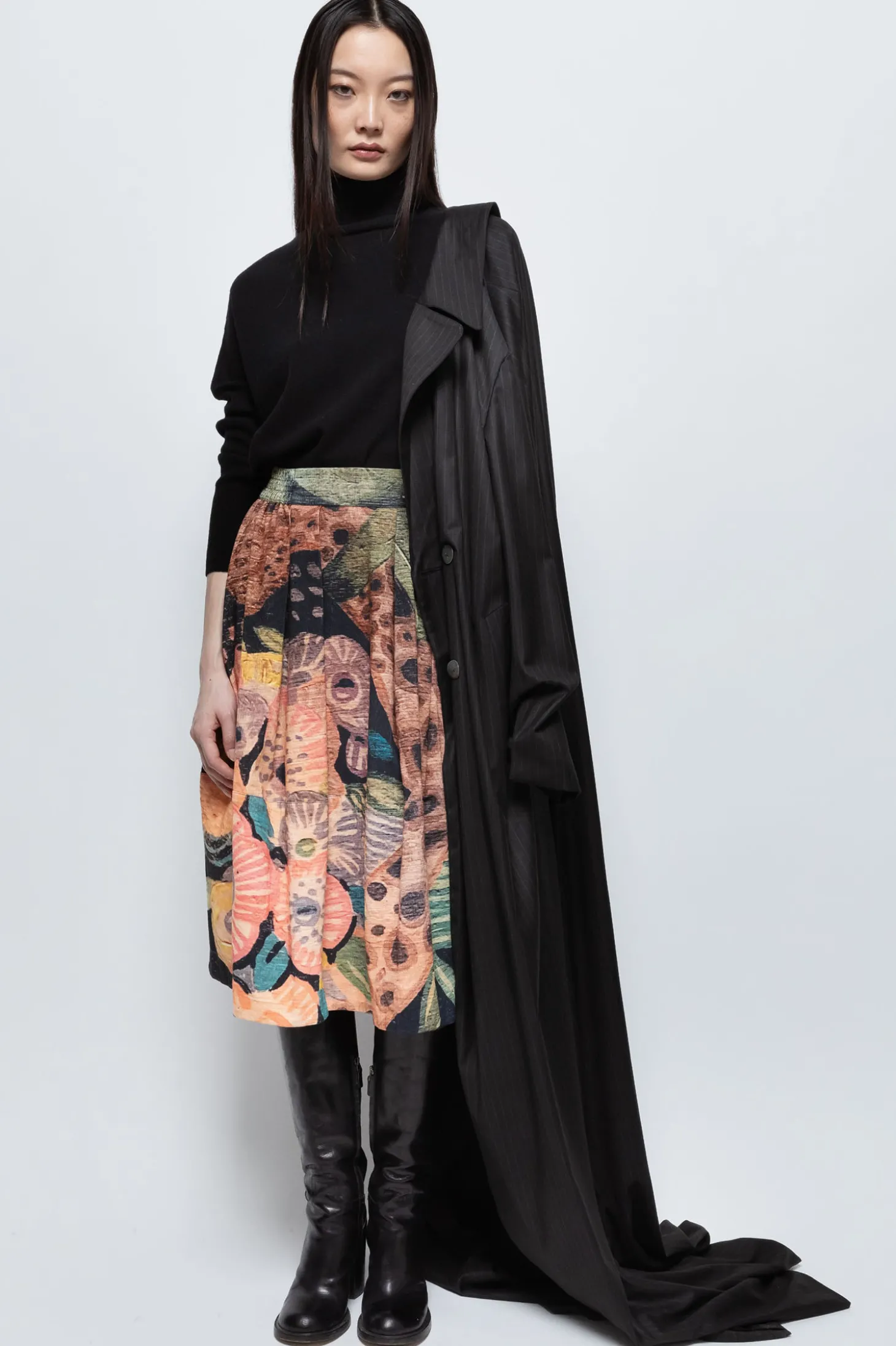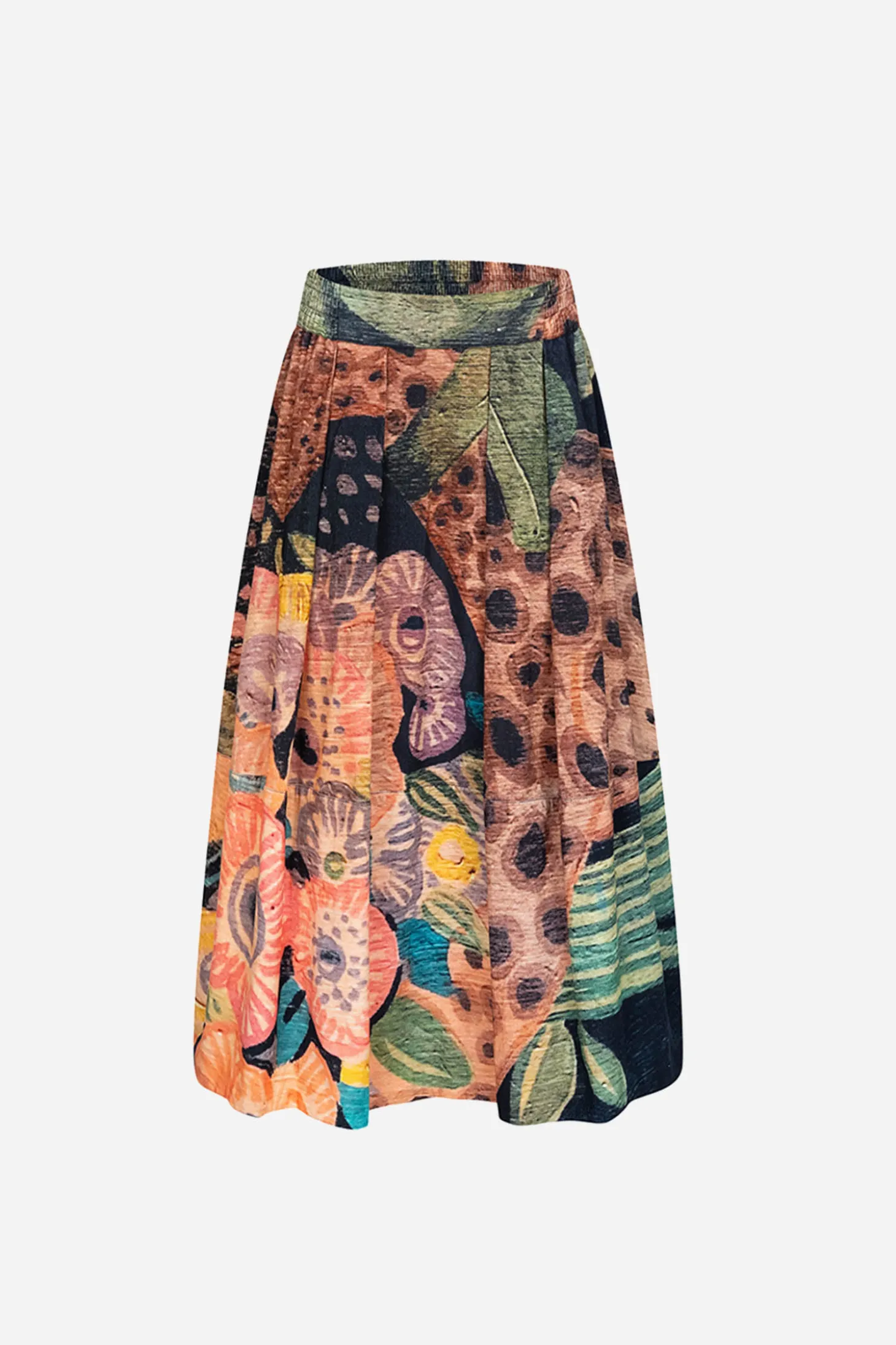 Weiter Midi-Rock aus weichem 100% Baumwollcord. Mit Gummizug am Bund, für mehr Komfort und seitlich, verdeckten Taschen. GPS-Code, der zum Ursprung des Designs zurückführt.