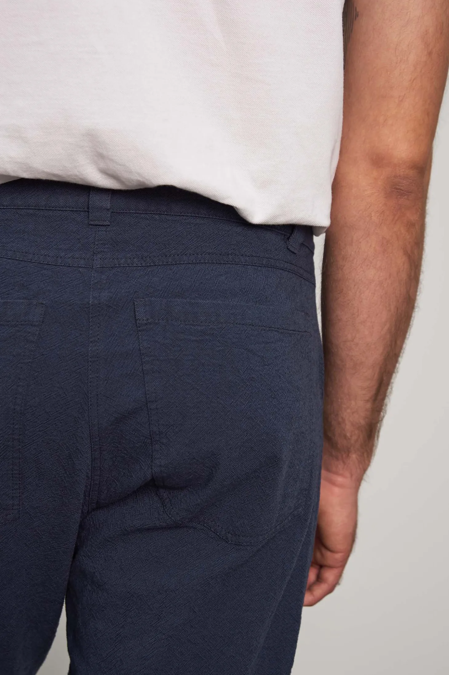 Gerade geschnittene Hose aus strapazierfähigem 230g/qm Bio-Canvas mit zwei Seitentaschen und zwei Gesässtaschen.