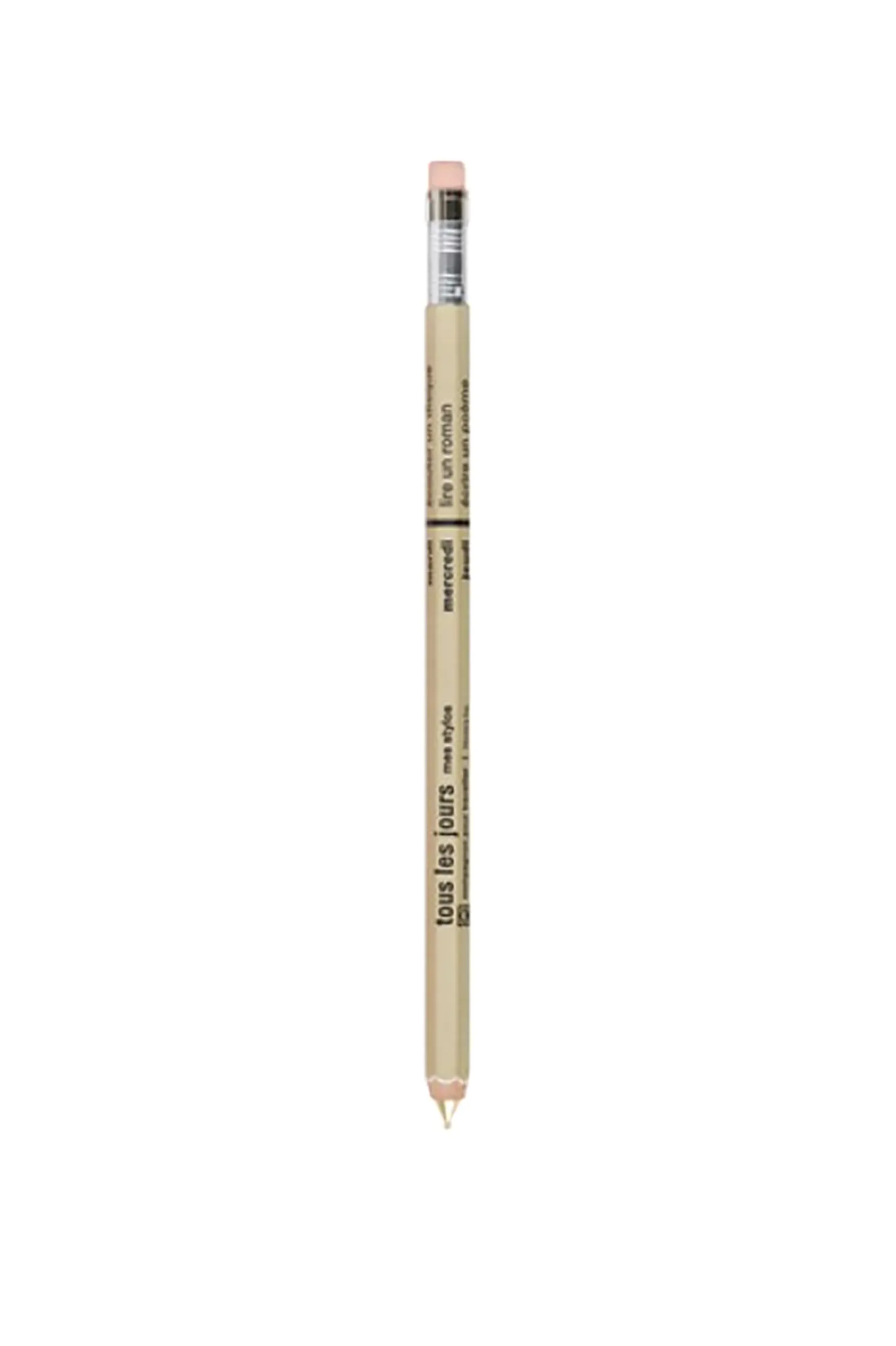 Dieser Druckbleistift hat einen eleganten Schaft, der an einen normalen Holzbleistift erinnert, das Innenleben ist jedoch mit der Funktionalität eines Druckbleistifts ausgestattet. Dank der eckigen Form kann der Stift nicht davon rollen. Zum nachfüllen werden 0,5 mm Minen gebraucht.