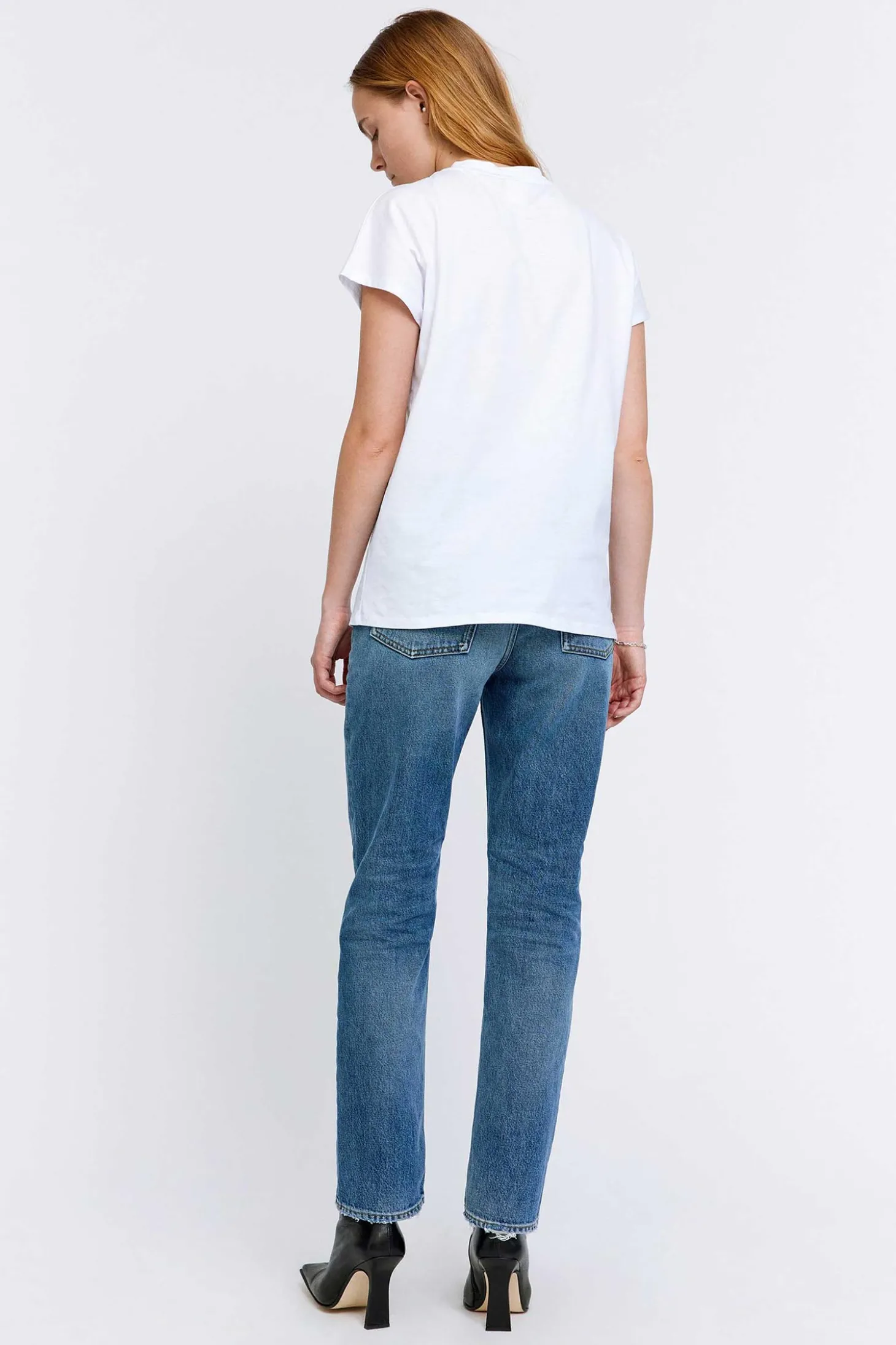 Angenehmes T-Shirt aus weicher Bio-Baumwolle. Es hat keine Ärmelnähte und kommt mit einem Rundhalsausschnitt und angeschnittenen Ärmeln.
