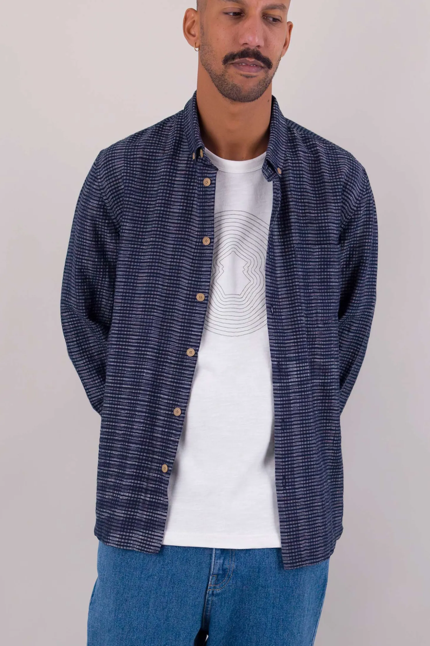 Textured Stripe LS, Navy Stripe