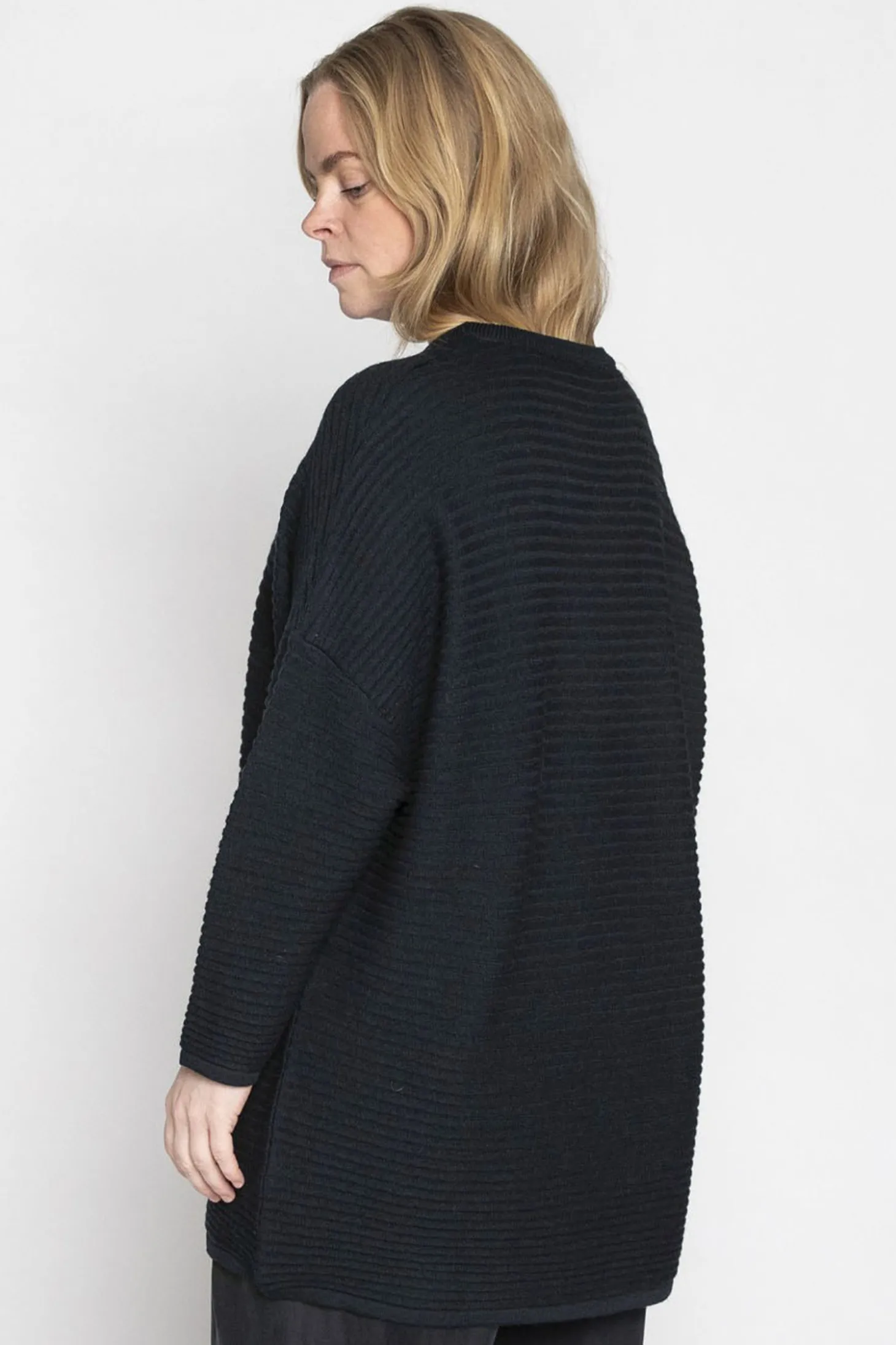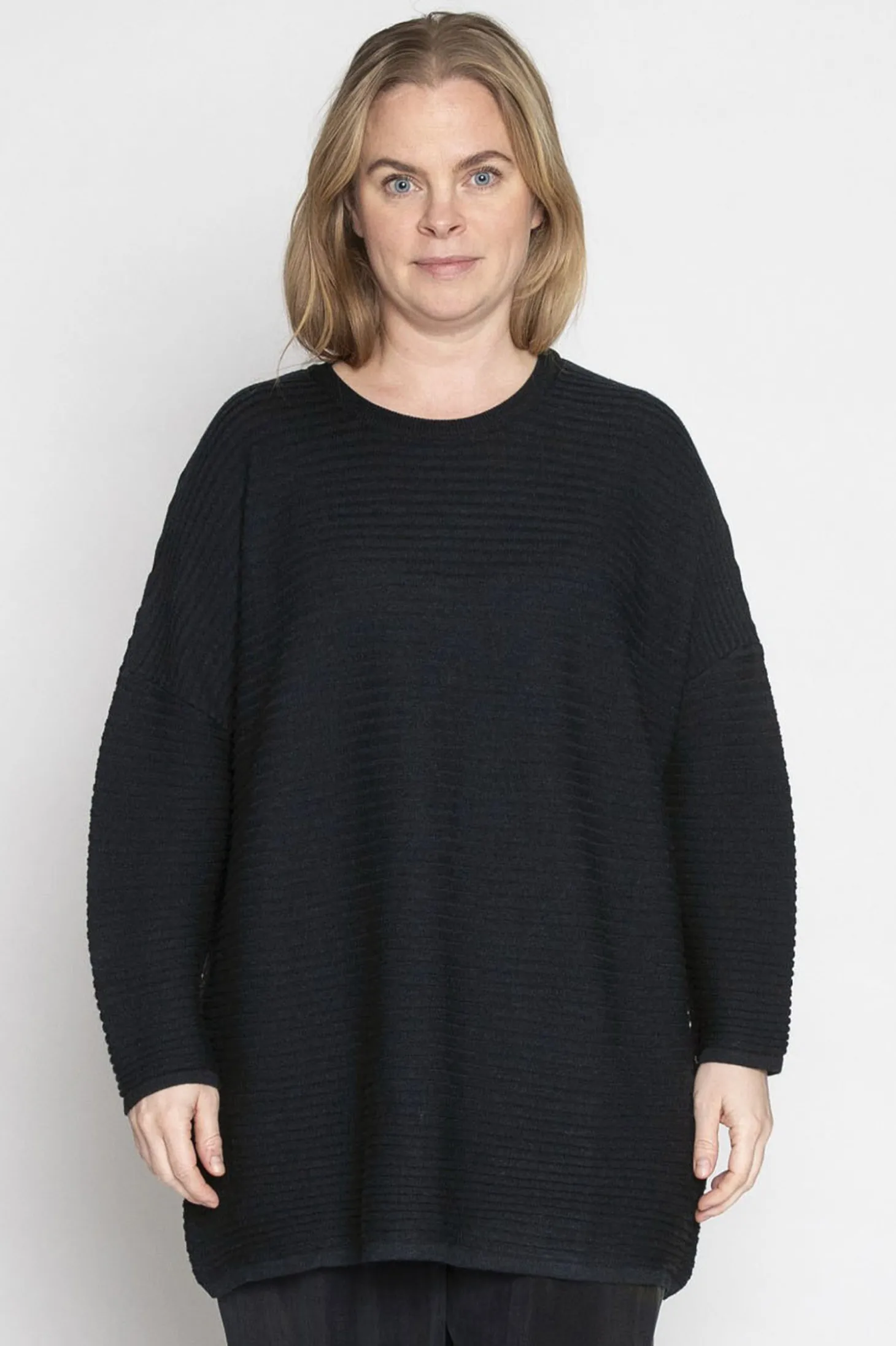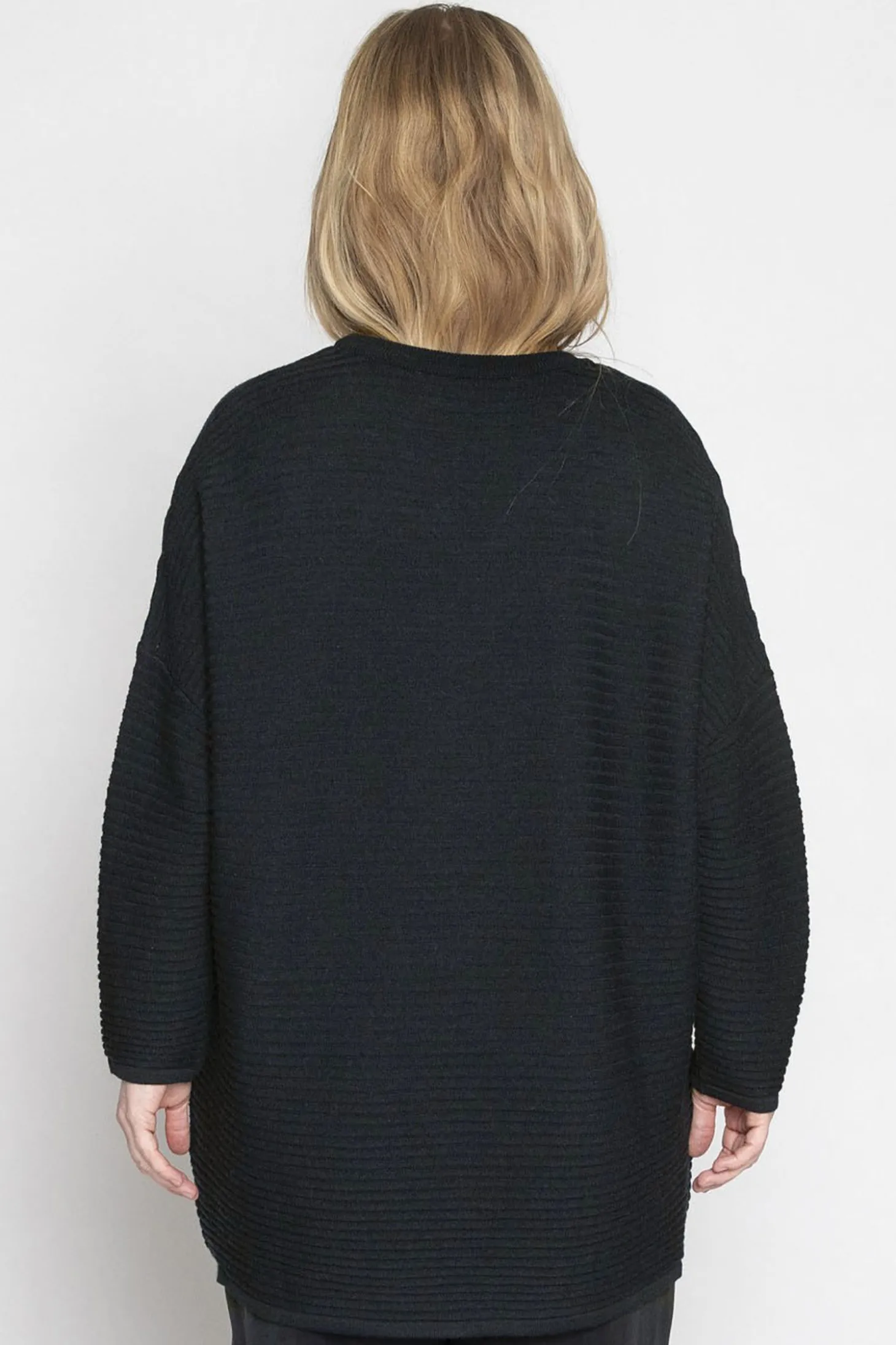 Oversize-Pullover aus grobem Rippenstrick mit weitem Rundhalsausschnitt. Mit überlangen Ärmeln und schönem Bündchenabschluss. Einheitsgrösse