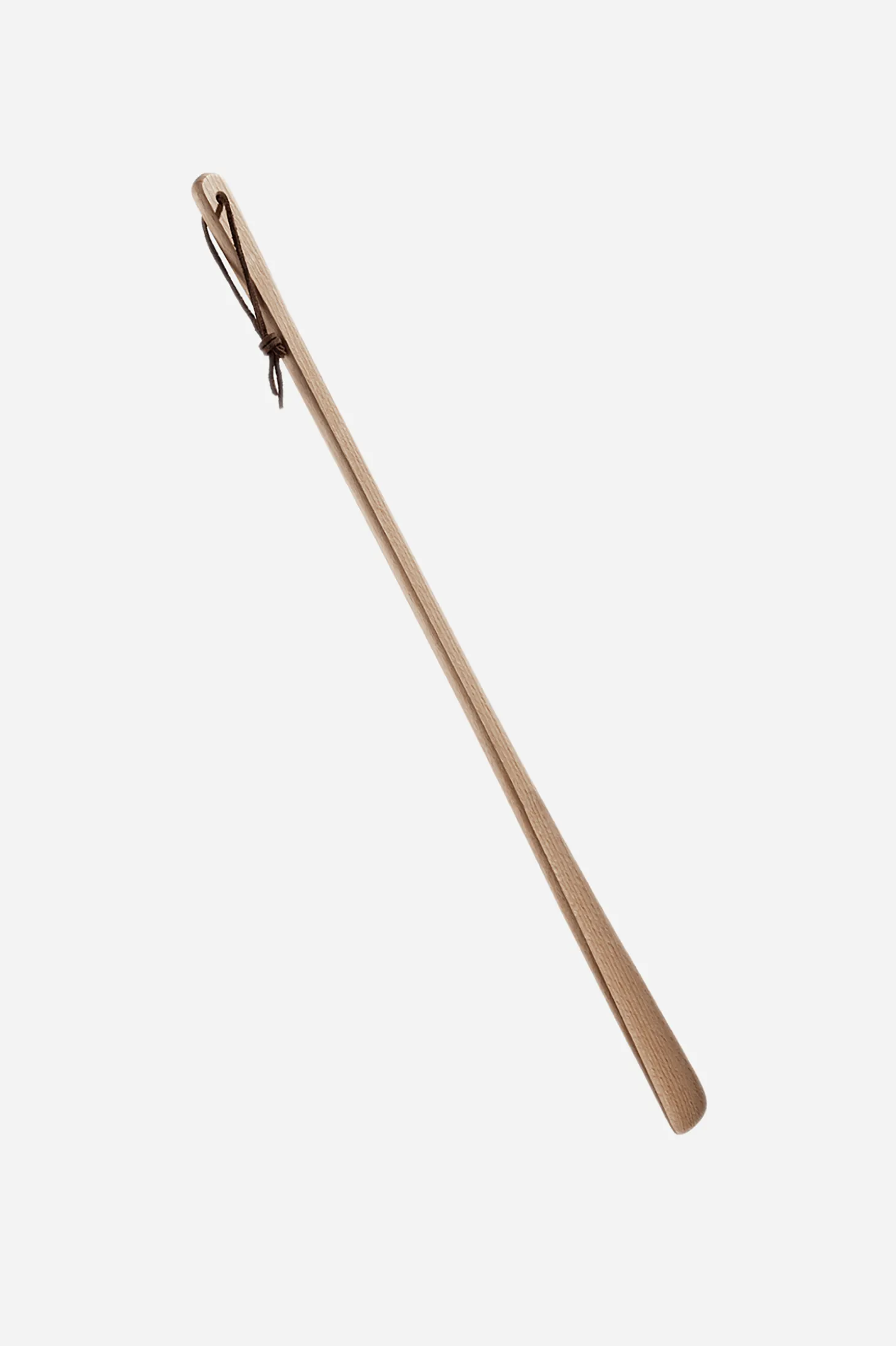 Schuhanzieher aus geöltem Buchenholz mit Lederschlaufe ca. 64 cm lang. Hergestellt in Deutschland.