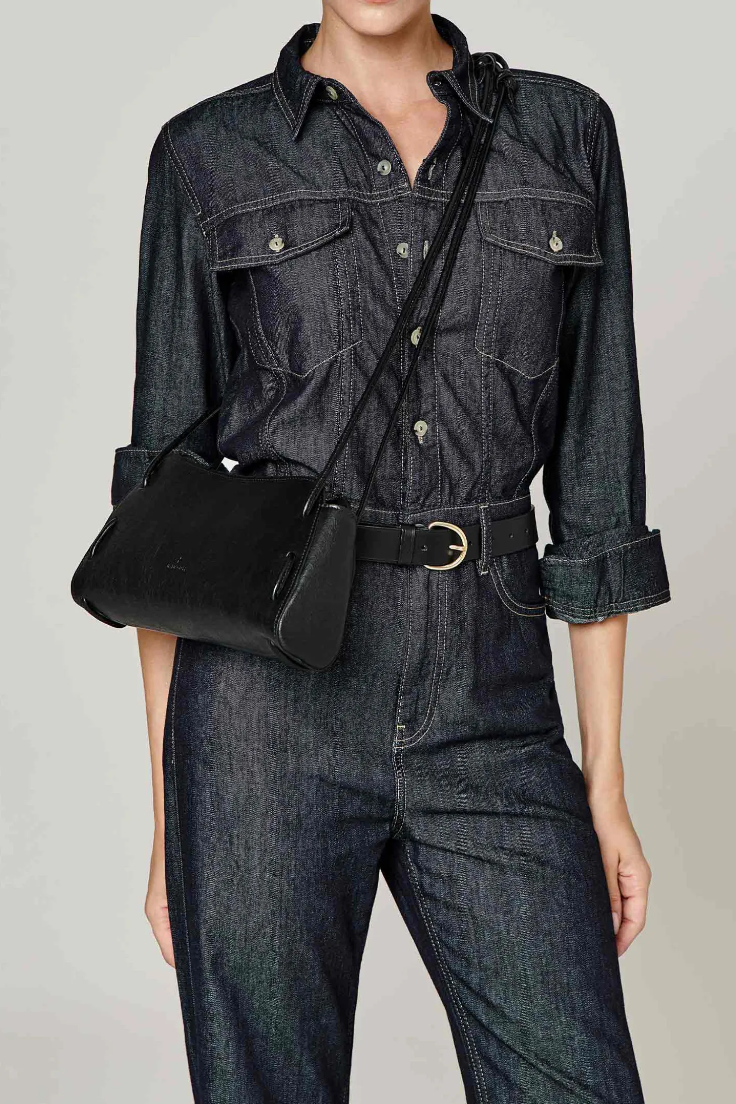 Auf einem Buchenholzrahmen geformte Umhängetasche, die auch als Crossbody getragen werden kann. Die Länge der Henkel kann durch Verschieben der handgenähten Knoten verstellt werden.