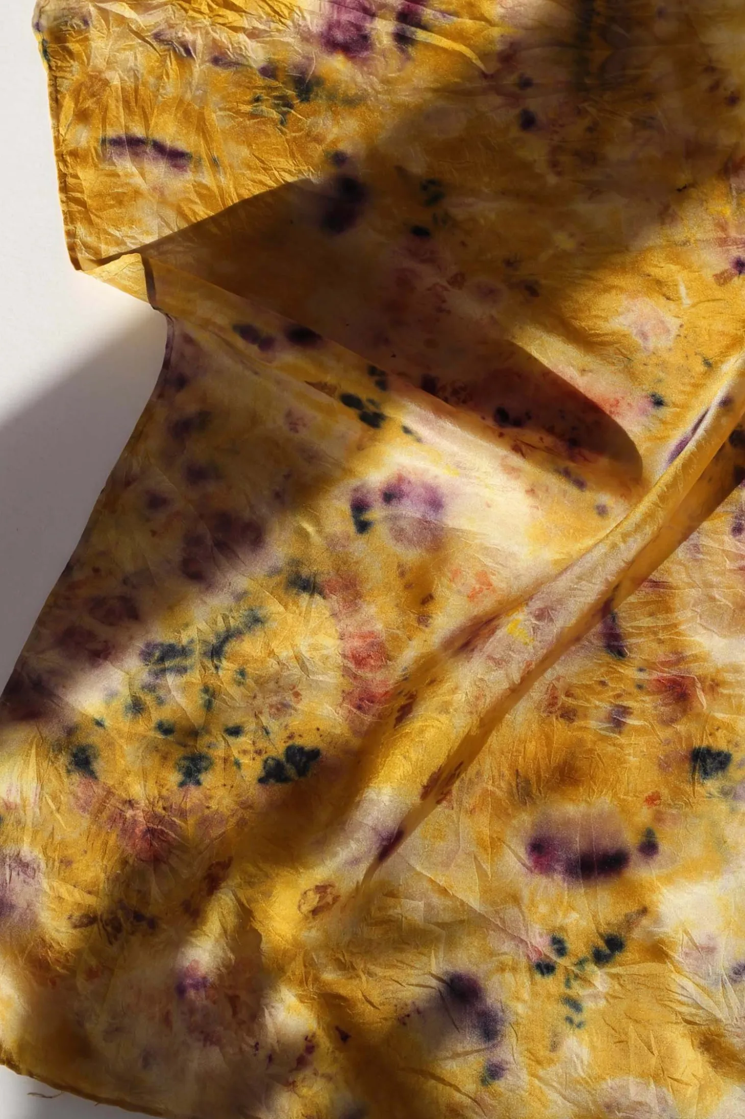 Die Seide wird von Hand mit einer Kombination aus Pflanzen, Blumen, Lebensmittelabfällen und natürlichen Farbstoffextrakten gefärbt, um einen einzigartigen Druck auf dem Stoff zu erzeugen. Aufgrund unterschiedlicher Färbeverfahren kann es vorkommen, dass Ihr Artikel nicht mit dem abgebildeten identisch ist.