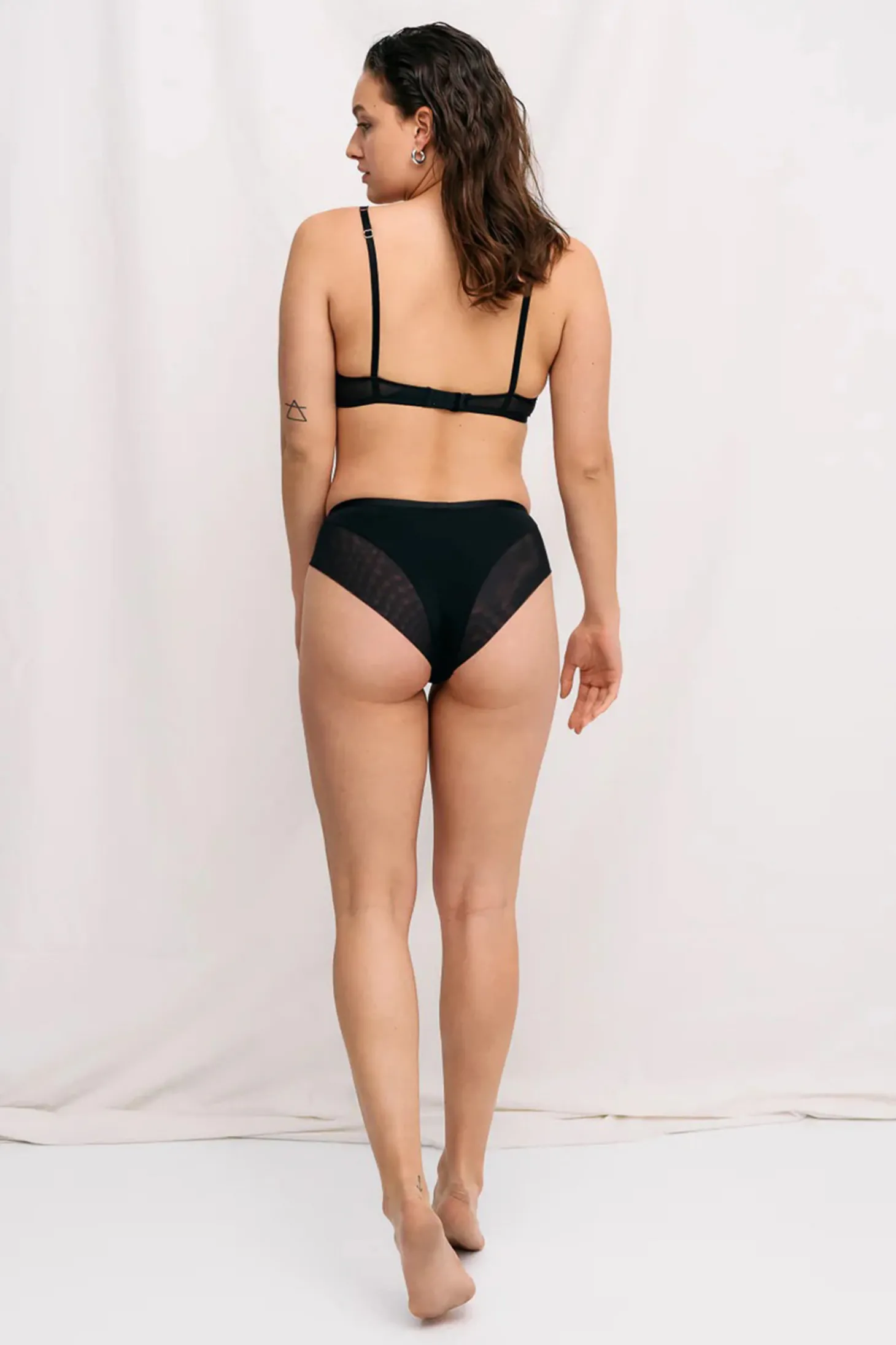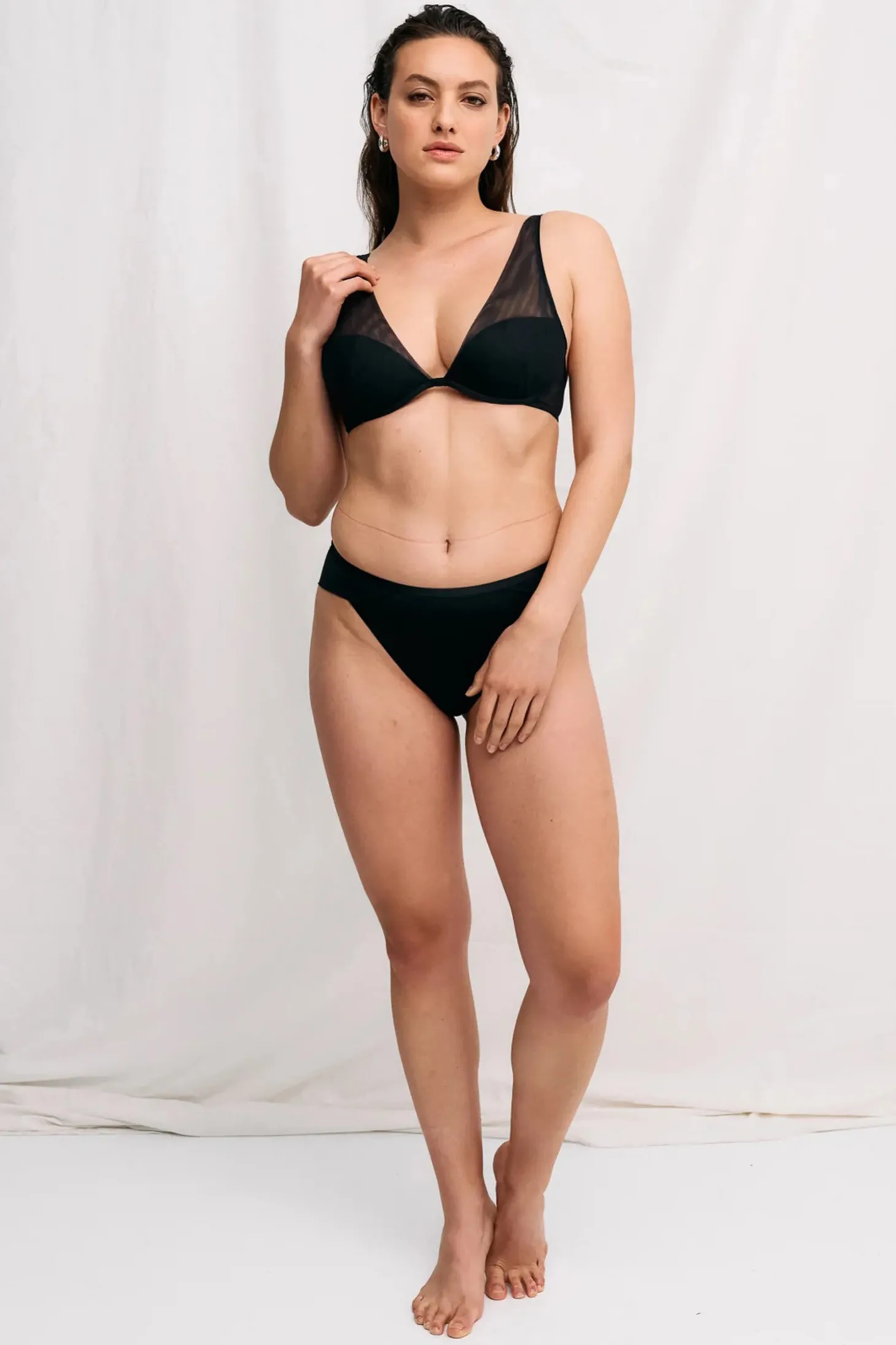 Puristisches Design mit dem gewissen Etwas dank raffinierter, transparenter Einsätze aus Mesh Stoff – dies macht die Unterhosen der Pure Line aus. Dank doppeltem Mesh Stoff zeichnet dieser Slip nicht ab. Wähle dazu einen für dich passenden BH aus der gleichen Linie für den kompletten Look. Hergestellt in Bulgarien.