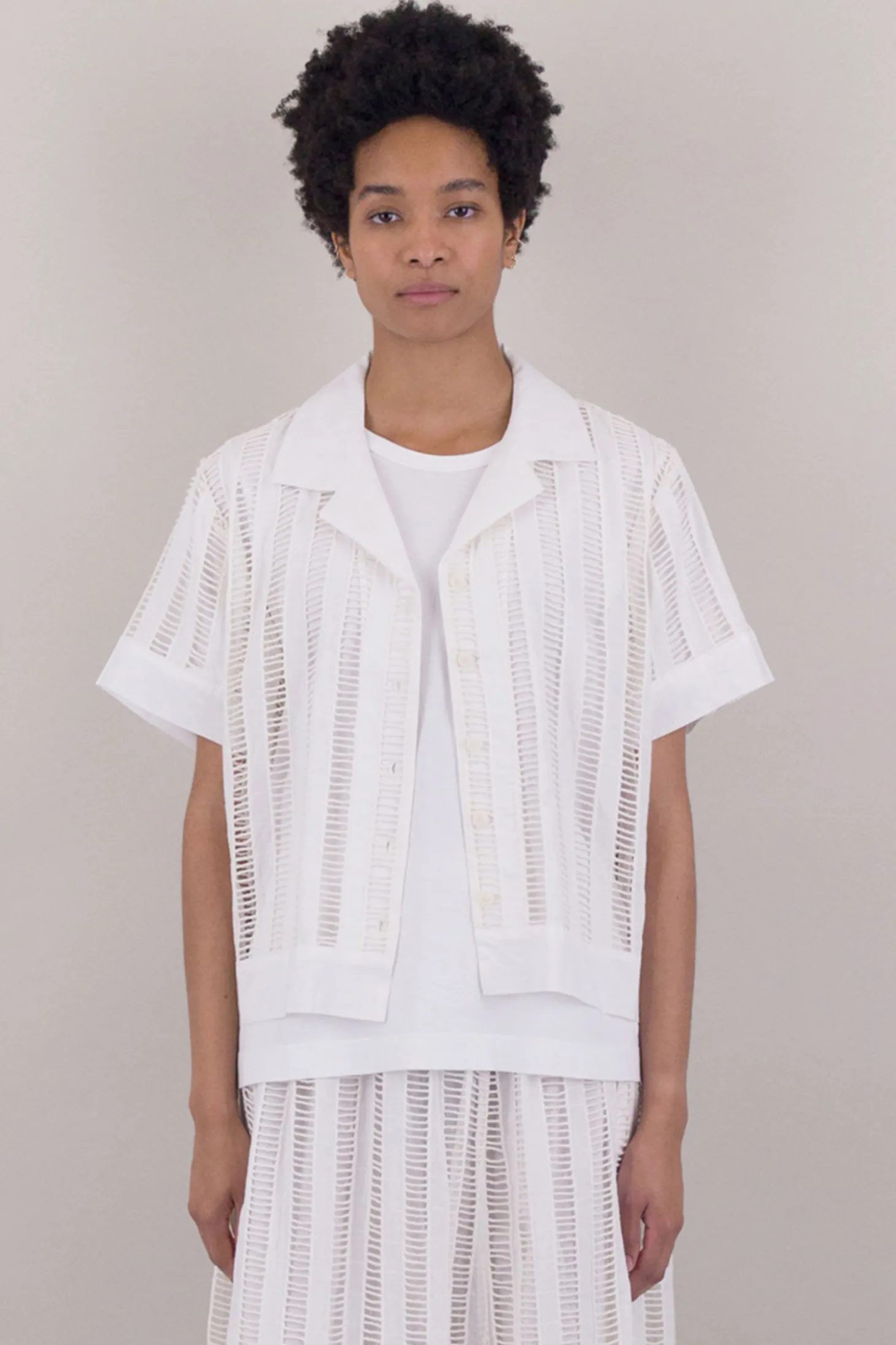 Soft Collar Shirt, Ladder Embroidery