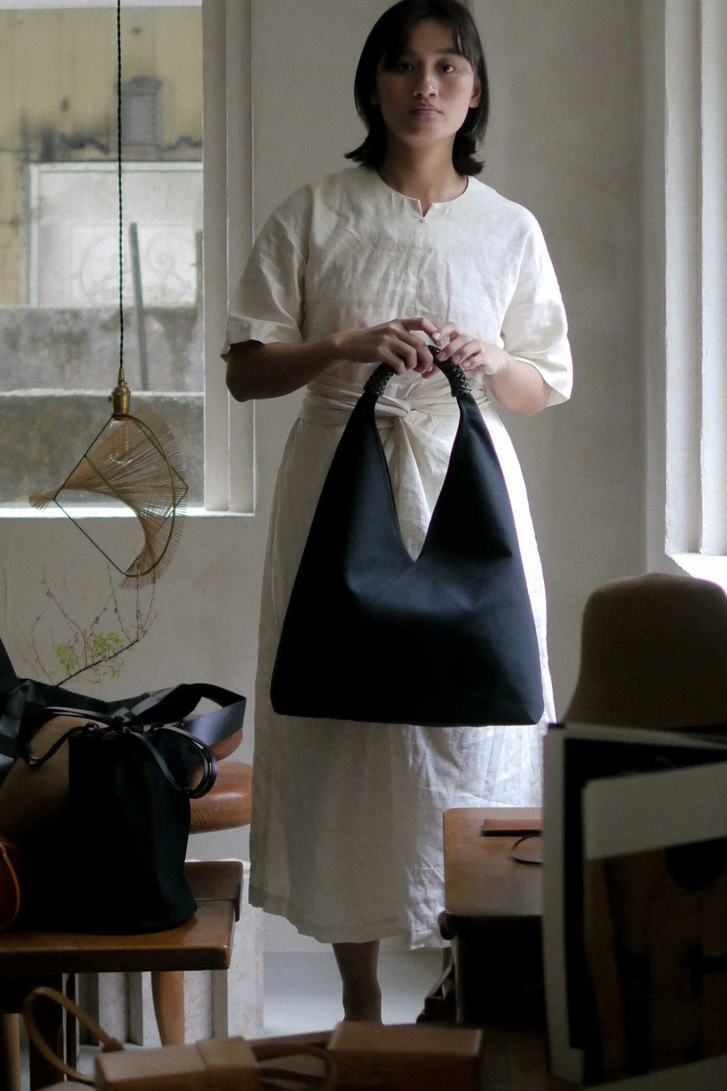 Material: 100% Baumwollgewebe, pflanzlich gegerbtes Rindsleder