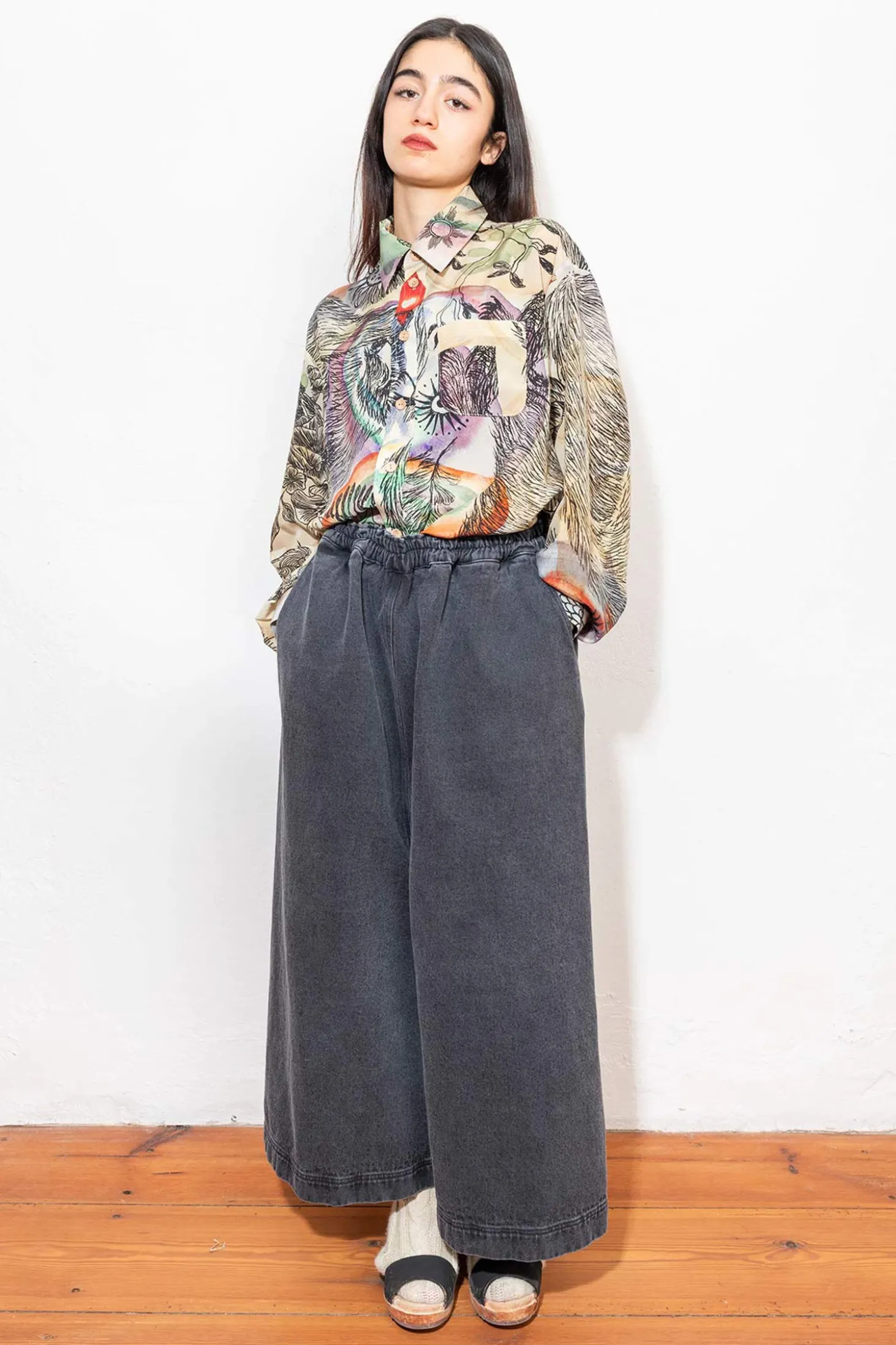 Wunderschöne, lange Unisex Bluse mit Kragen und Manschetten an den Ärmeln.