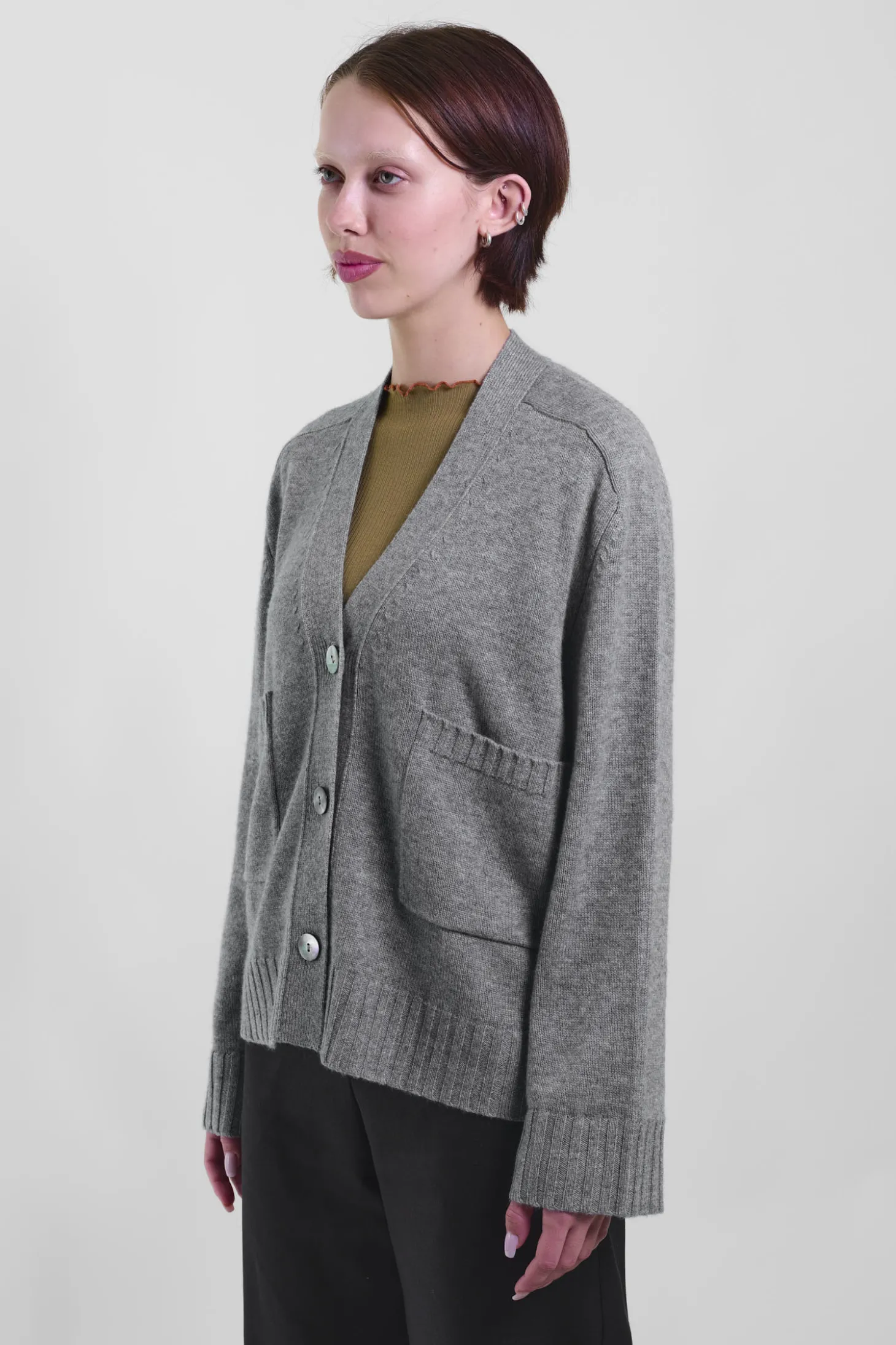 V-Neck Cardi 88, Pebble