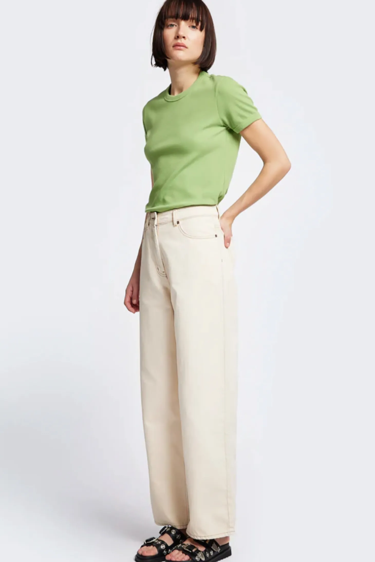 Ein schmal geschnittenes T-Shirt mit Stretch, das an den Stil der 70er Jahre erinnert.
