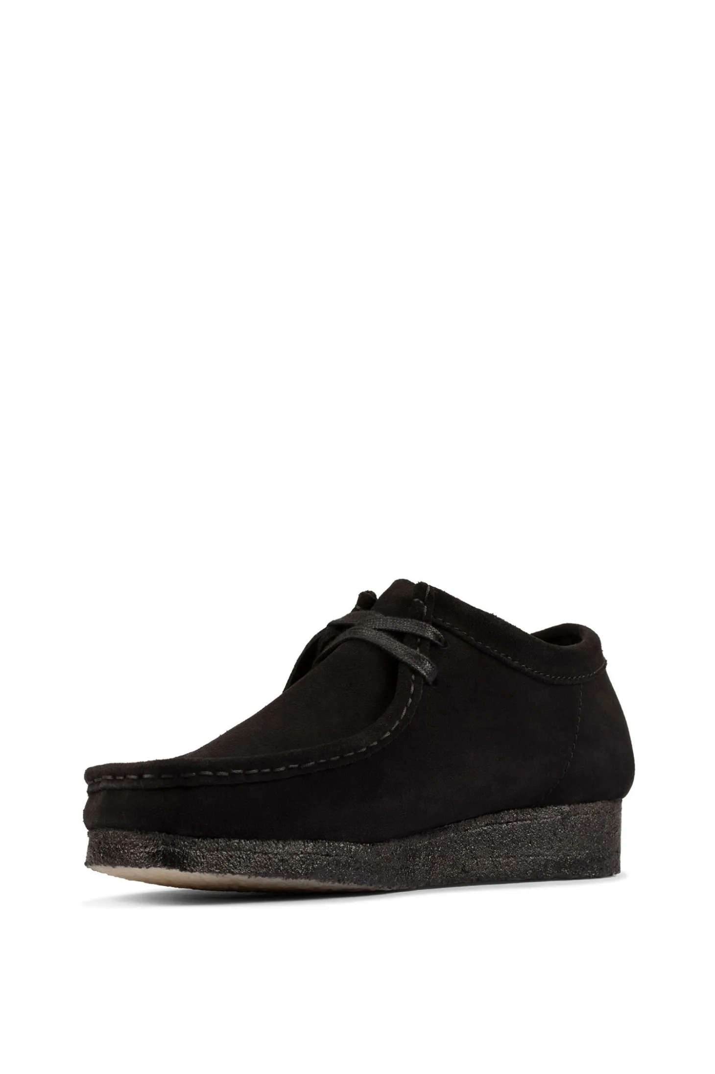 Der Wallabee ist mit seinem Mokassin Aufbau und seiner strukturellen Silhouette ein legendärer Klassiker der Clarks Originals Kollektion geworden. Das Schnürmodell mit klaren und schlichten Linien ist aus schwarzem Veloursleder mit Kreppsohle gefertigt.
