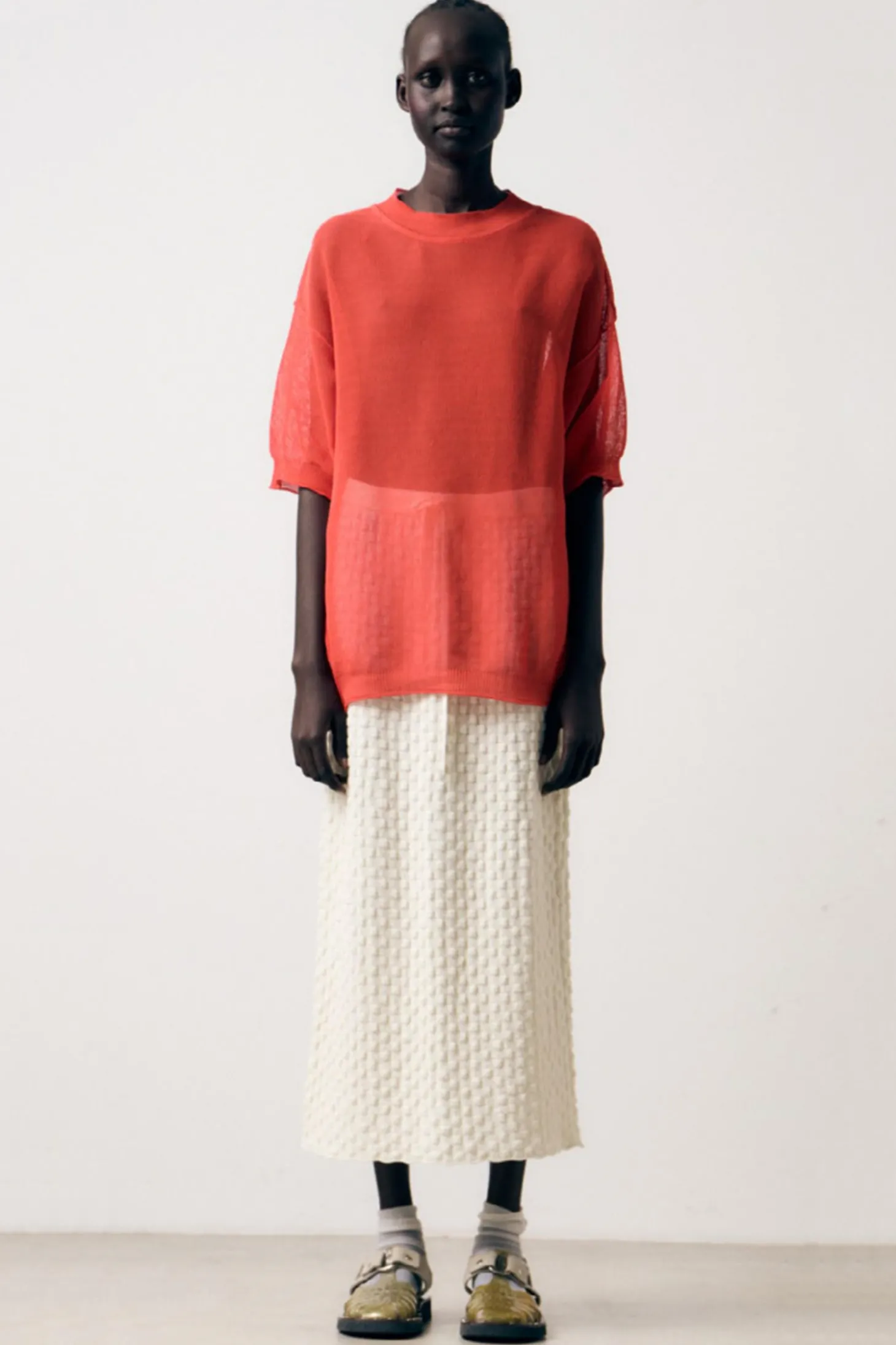 Bei RUS wird jedes Kleidungsstück in einer lokalen, familiengeführten Fabrik produziert. Vollgeformte Strickwaren werden ohne Garnabfälle produziert. Mit der Natur als Inspiration schafft RUS eine sensorische Welt aus taktilen und visuellen Erfahrungen.